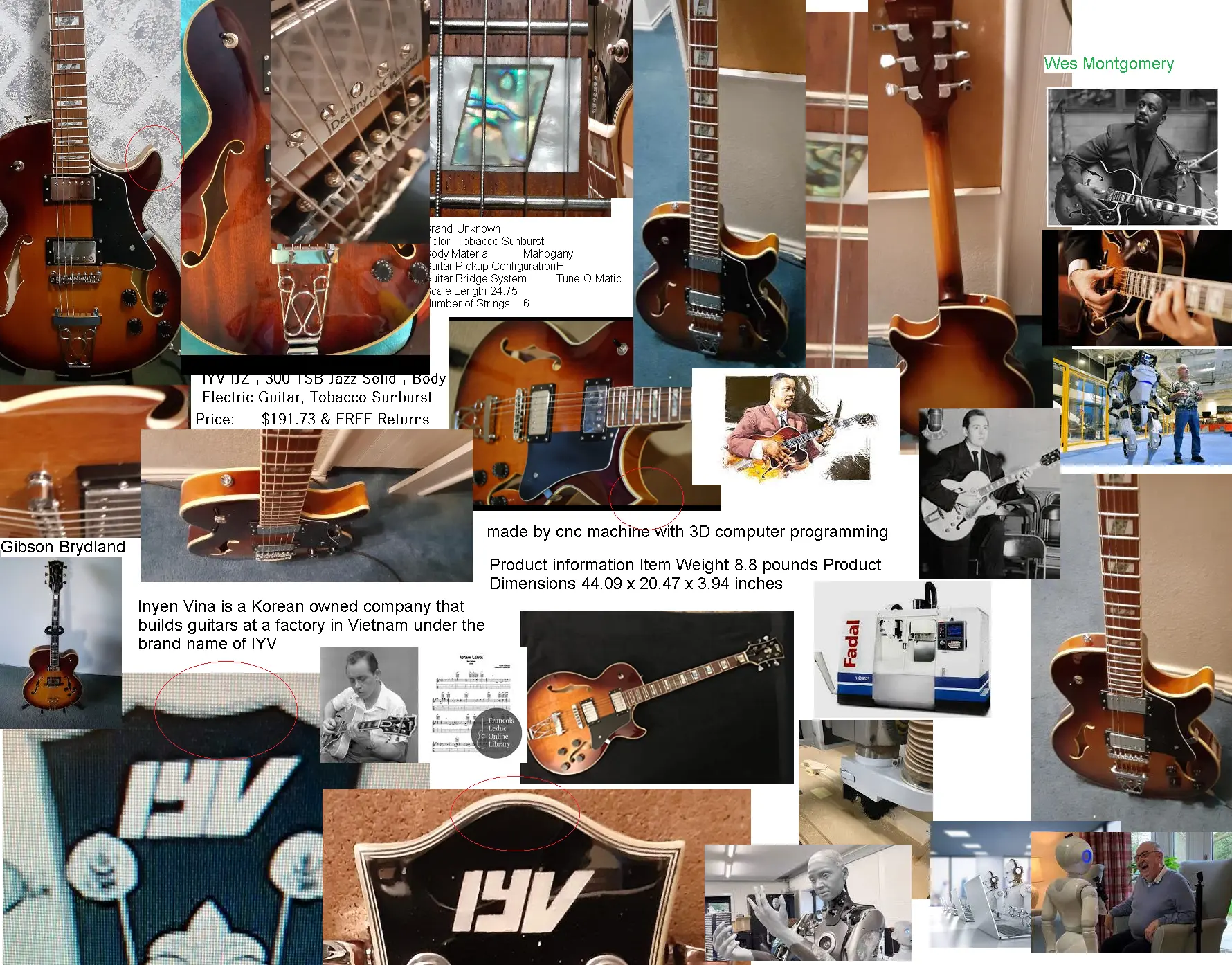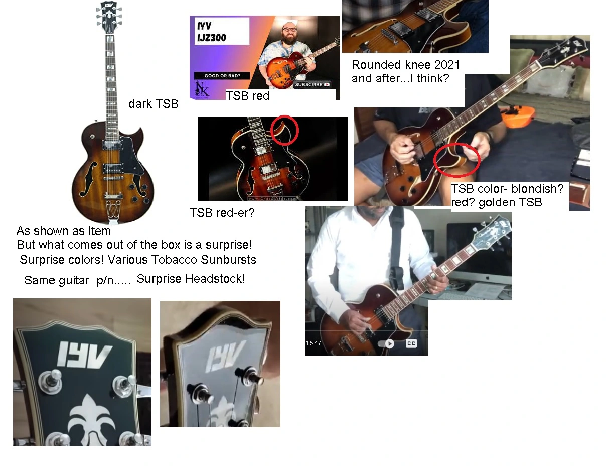 At $190 the picture shows a Gibson-ish semihollow but what arrived is "the new" version and it seems, Im guessing, but the Headstock and body had a couple too close to Gibson-ish and they changed up and rounded some corners and slight adjustment to the headstock (like WARM and Neumann 87 shape change?) ....any way. The bigger difference was the color from the picture was a lighter sunburst.