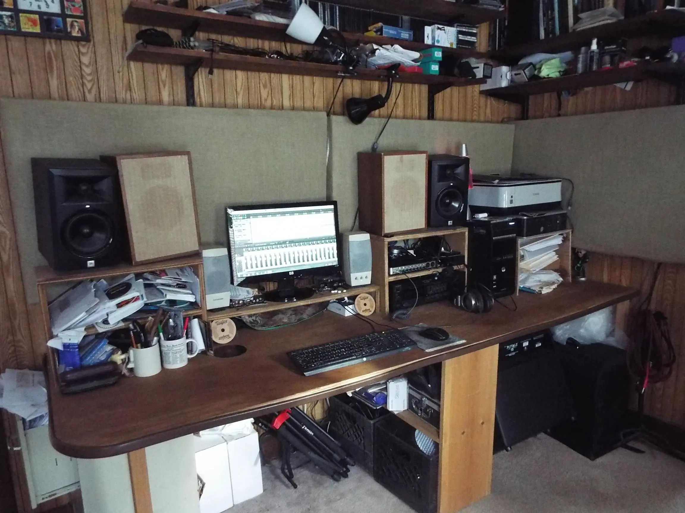 Yesterday I took about 2 hours, cleaned and organized my mixing desk, and got everything rewired - YAY! Now I should be able to participate in the MP3 Clinic a little more, which greatly helped my listening/mixing in the past.