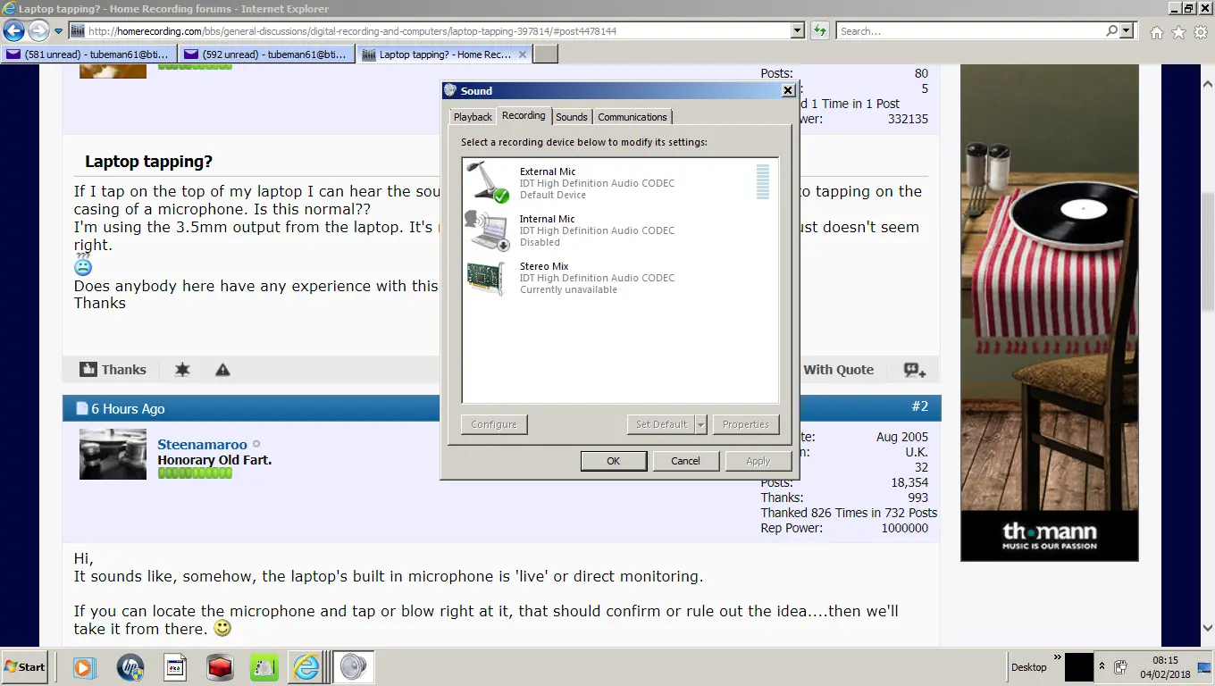 If I tap on the top of my laptop I can hear the sound come out of my studio monitors. It is similar to tapping on the casing of a microphone. Is this normal??