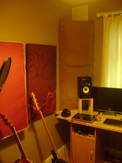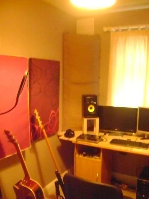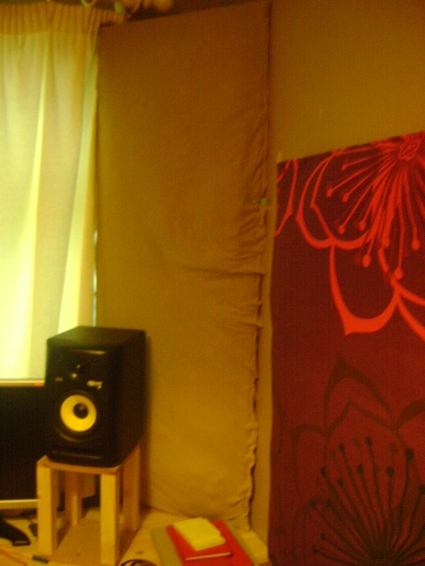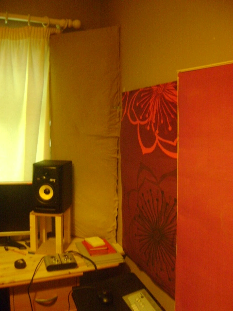 These are sliding panels I got in IKEA. They cover a closet door where I place mic stands, didge etc…