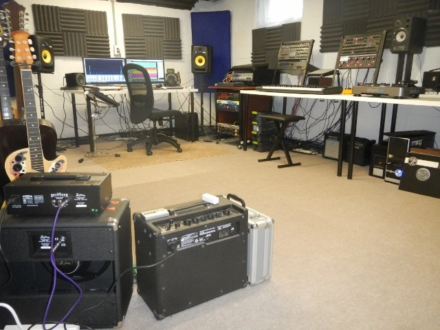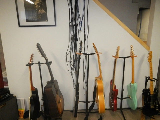 Out of shot there's a bass, an acoustic & a Chet Atkins and behind me (actually I had to sit on top) is our camping gear... Mic is set up next to that...