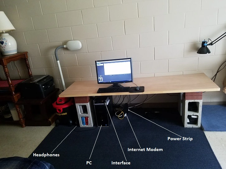 LOL! Mine is a hollow, unfinished, 80" x 24" interior door with a hole cutout for handles and lock (wires and cables routed thru to below) sitting atop 4 vertical cinder blocks with 2 red bricks atop each block. PC tower and all wiring is below with screen, keyboard and mouse on top. I'm to ashamed to post a pic..![]()