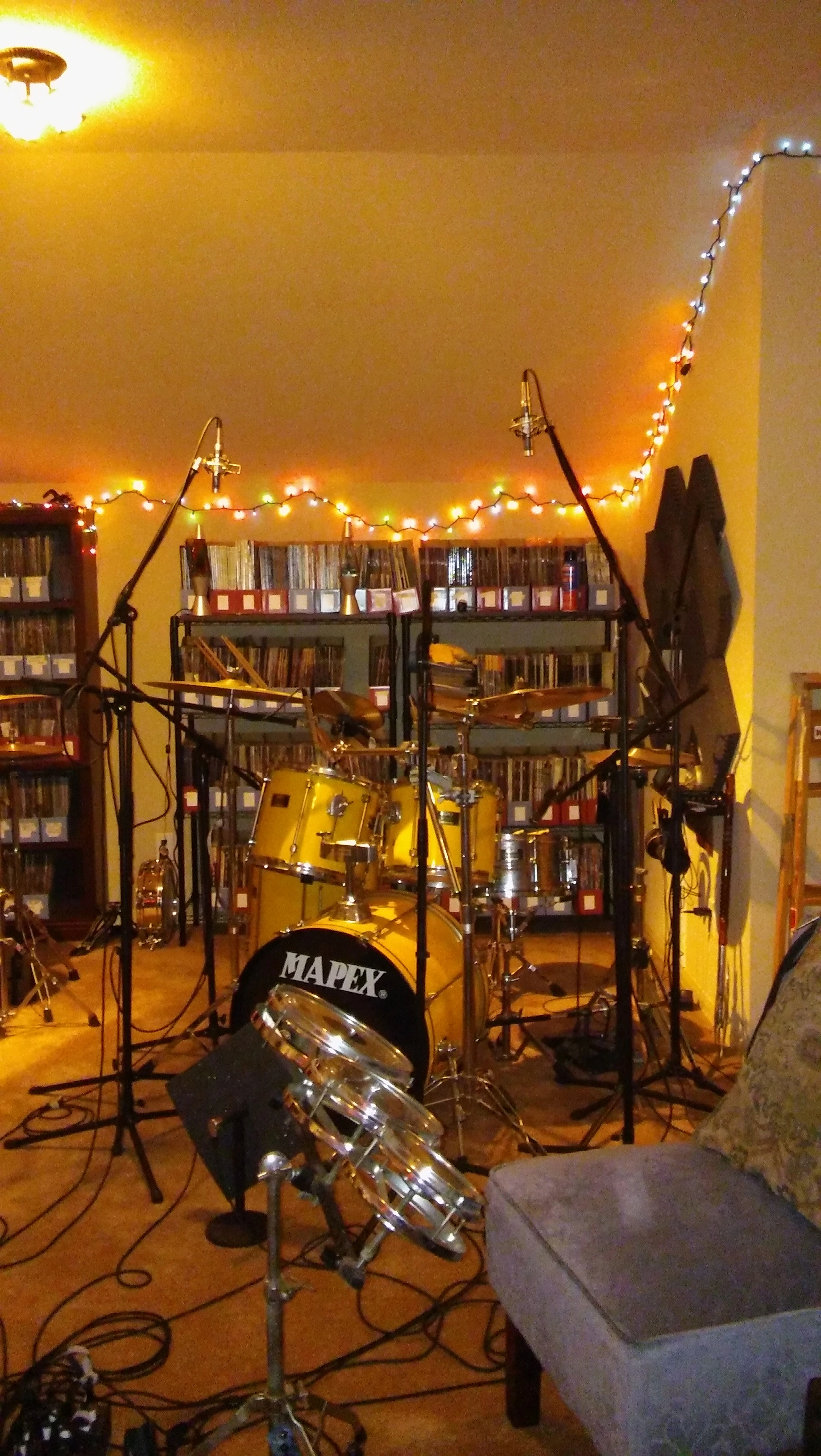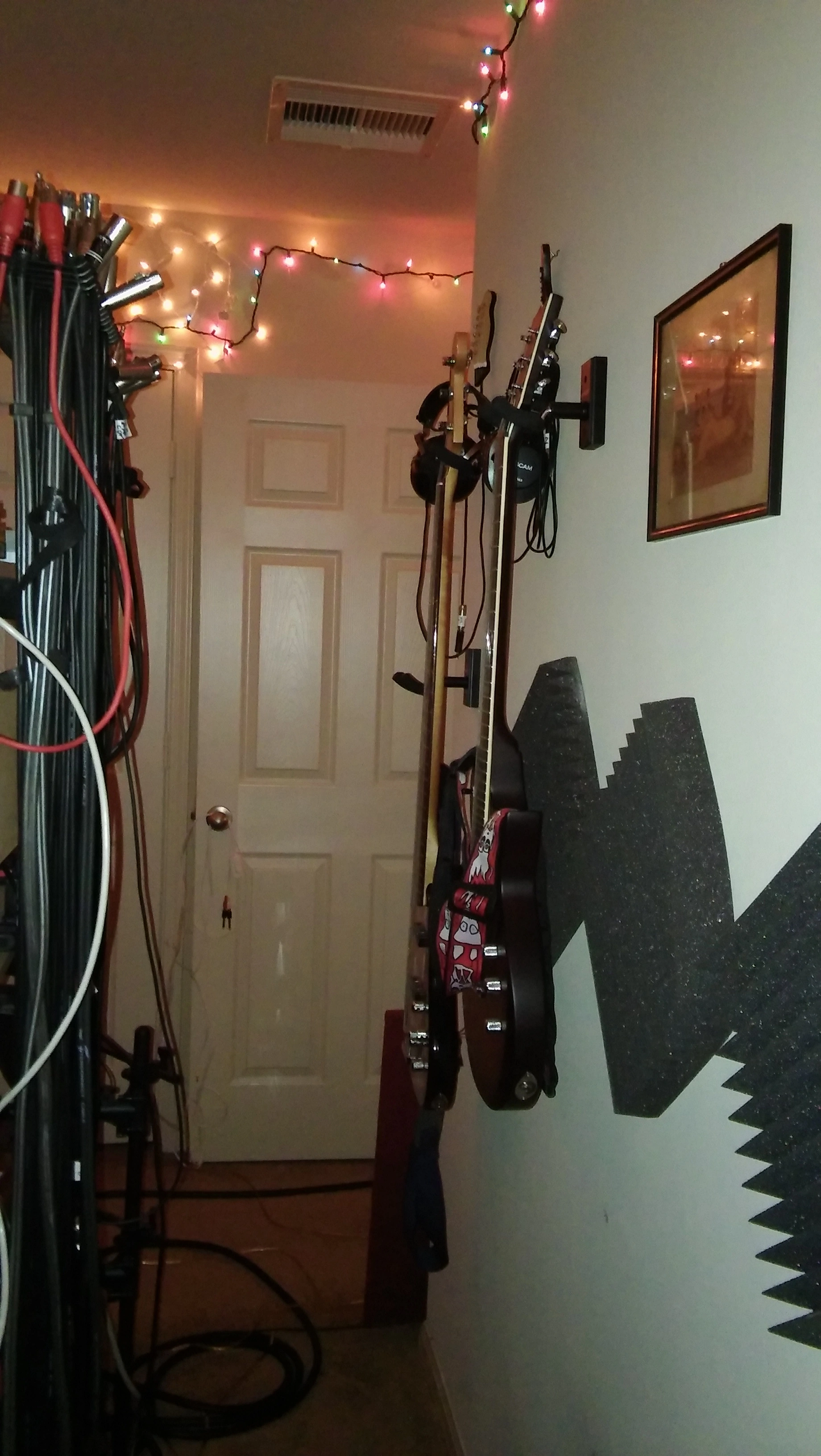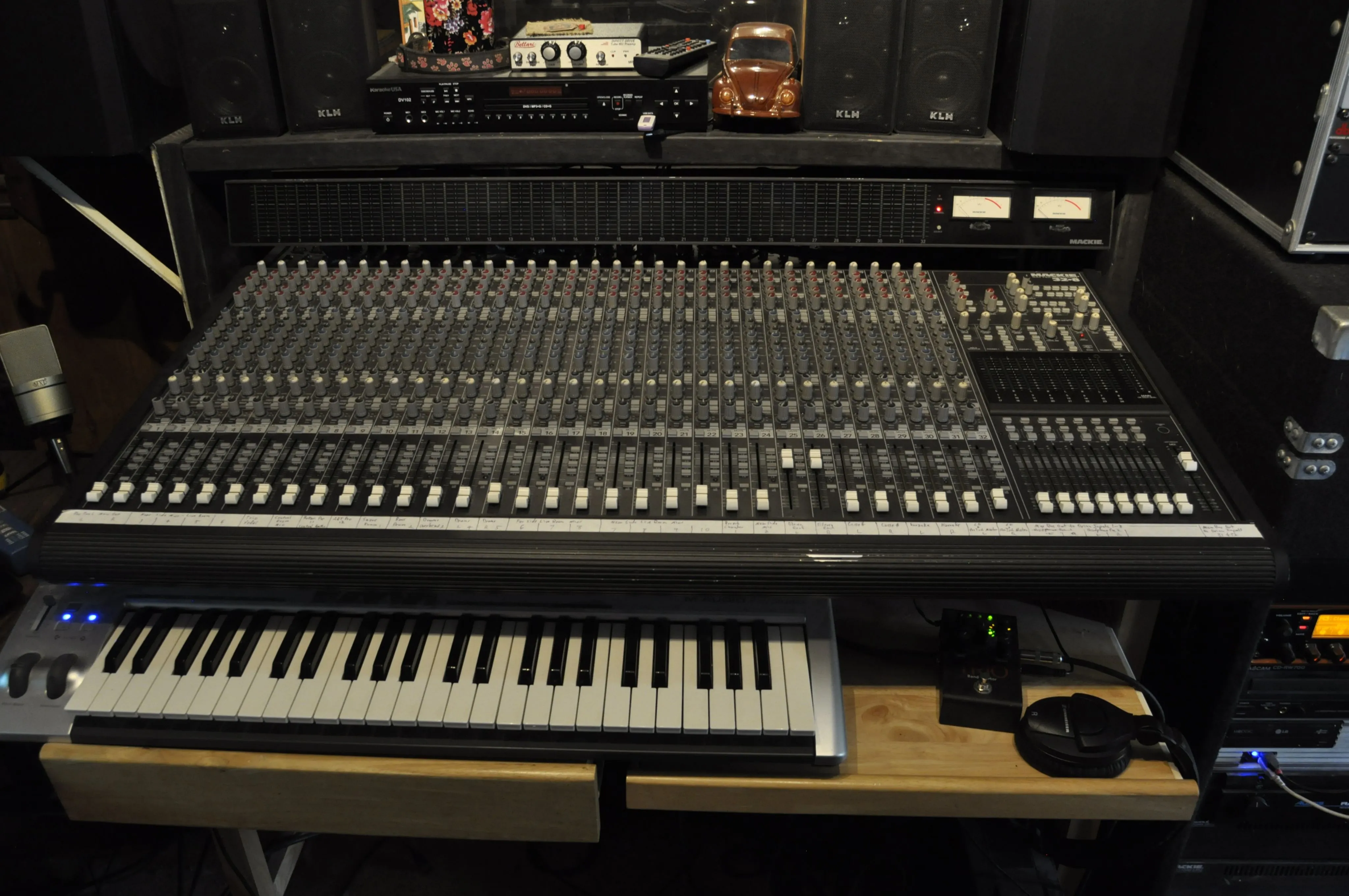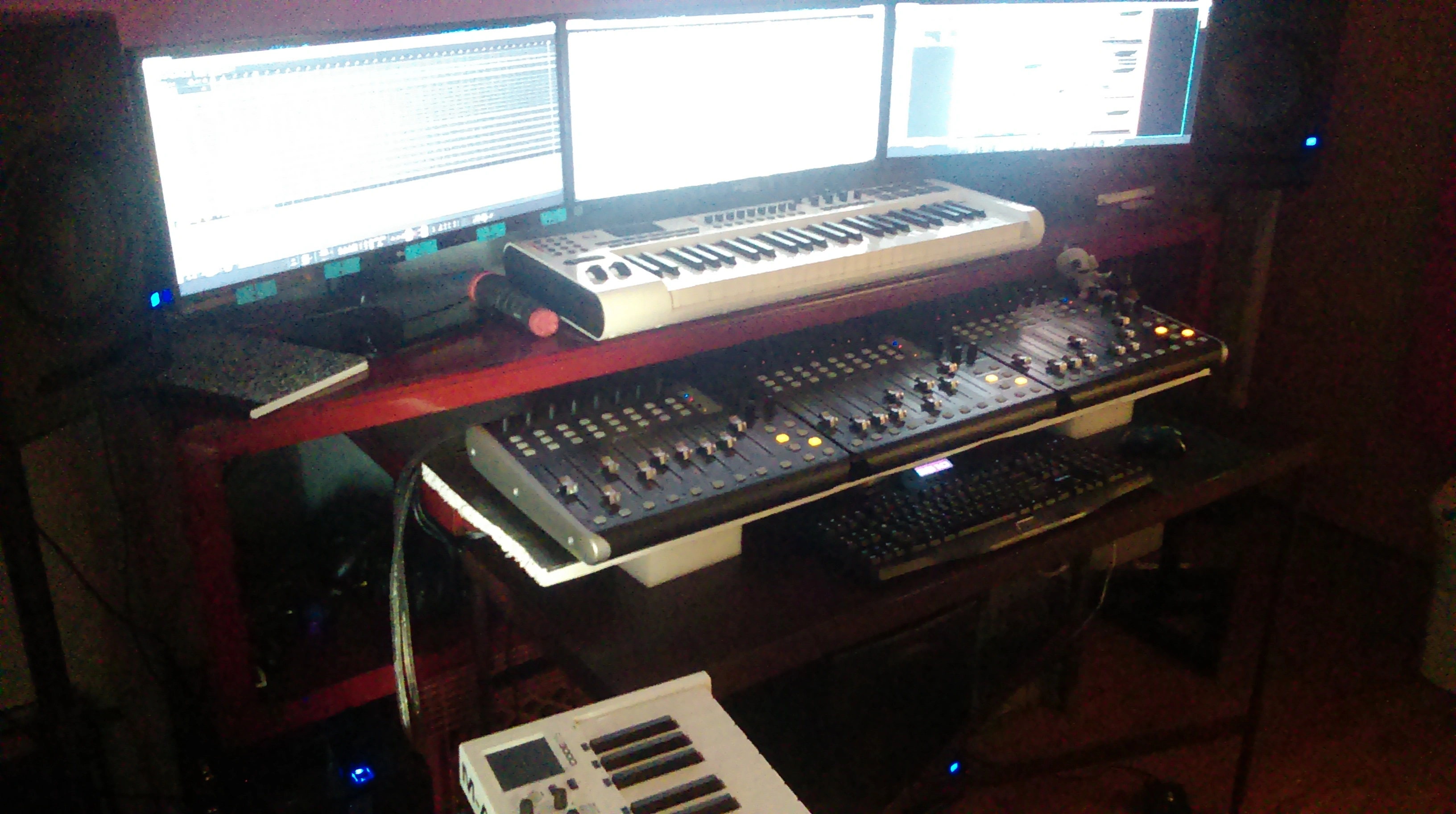 Here's my little analogue studio. Just a Tascam 488mkii on a keyboard stand. Upper rack has an 8 channel preamp and Sony wm-475 mix down deck. Then an old JVC receiver to run the Realistic Minmus 7's. I'm just starting out and wanted to do analogue on the cheap(ish, that 488mkii will run about $400 these days). Its fairly compact and sounds pretty good. I have a Boss ME-50 that's doing most of the outboard effects. I bought 100 20-minute tapes from National Audio Company a year ago, just before they ran out of chrome tapes. and cause of a mixup later I got another 100 tapes. They give 5ish minutes which is plenty for most of my songs. I can then label those to keep track of them. Using this as my only recording system at the moment. Cheers.
