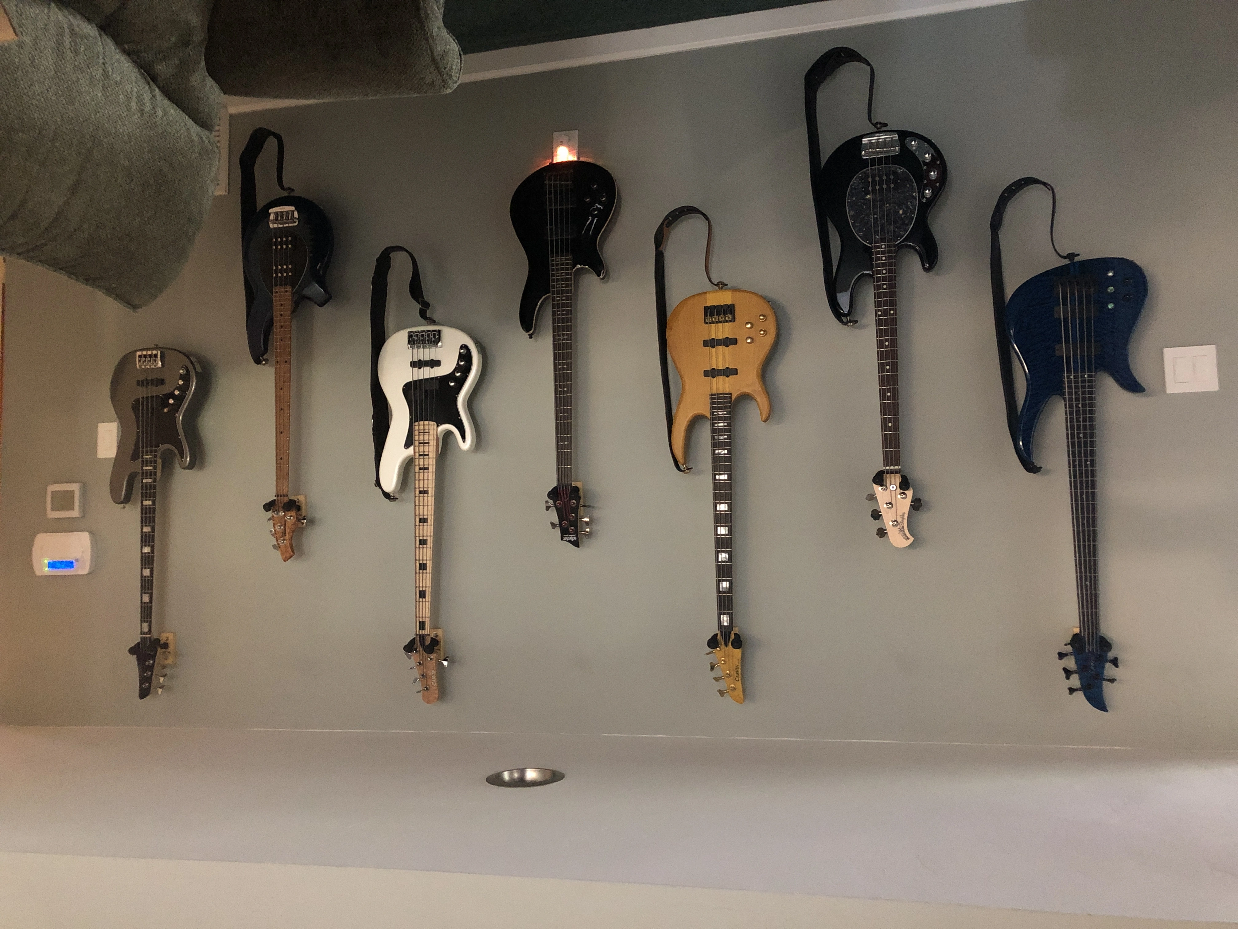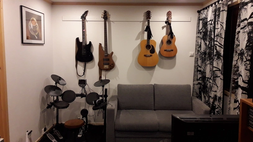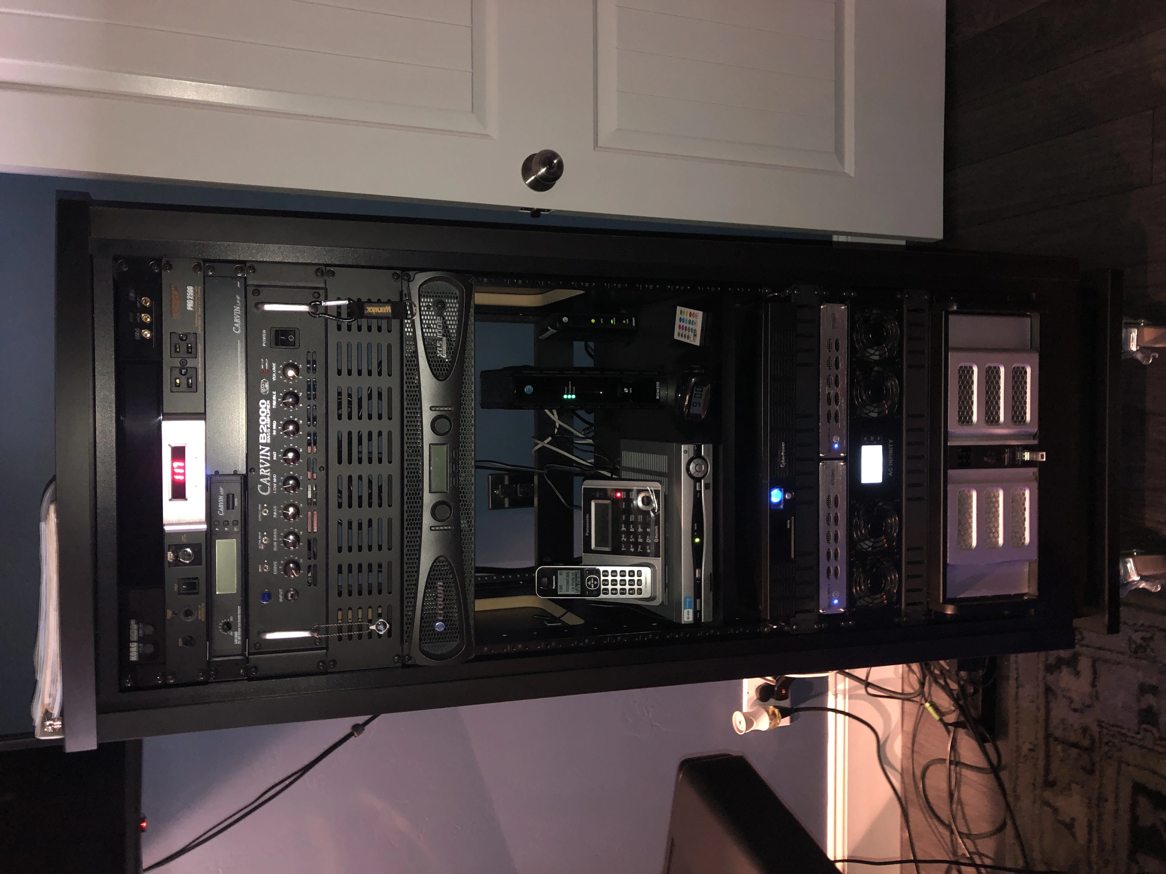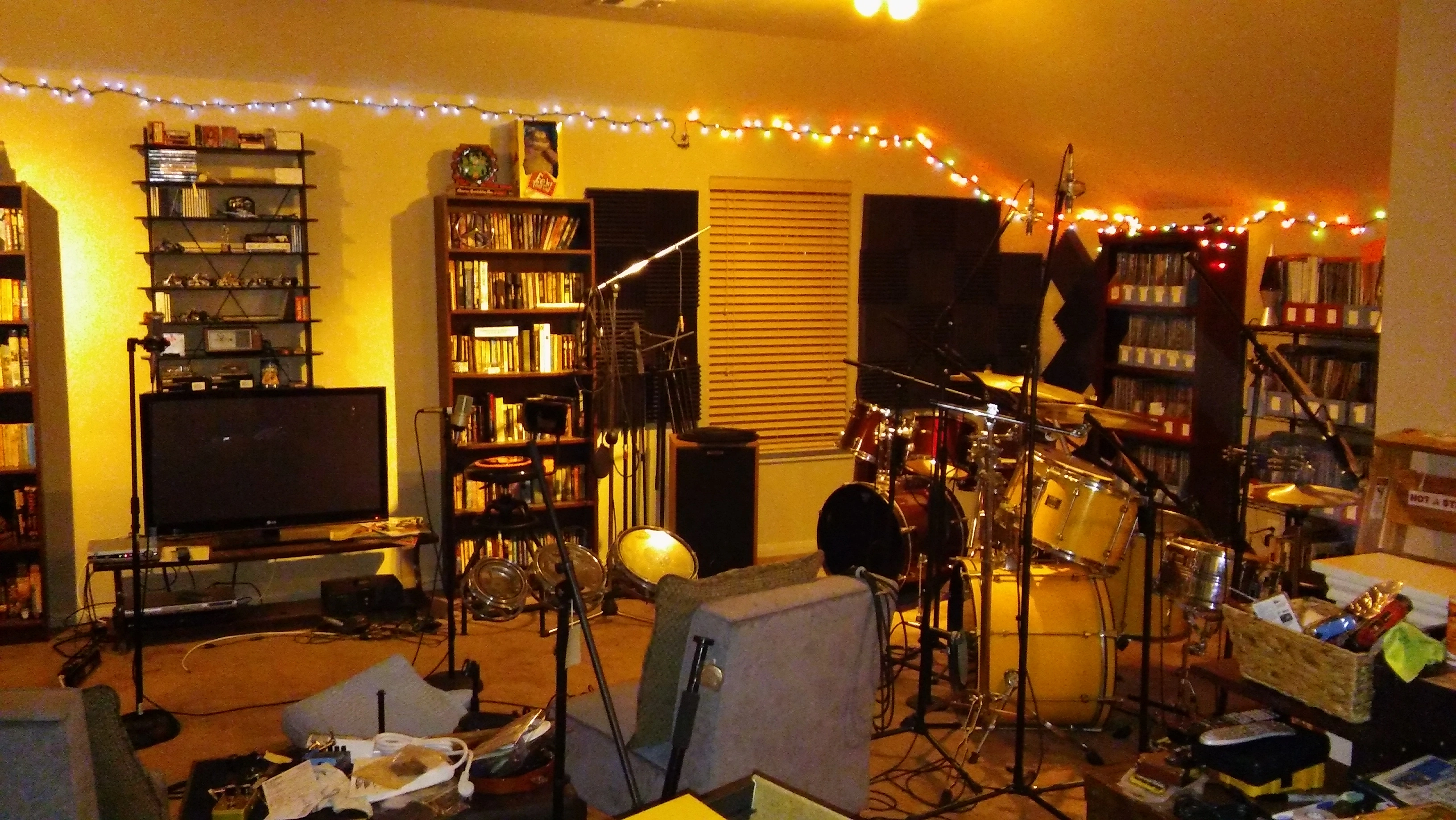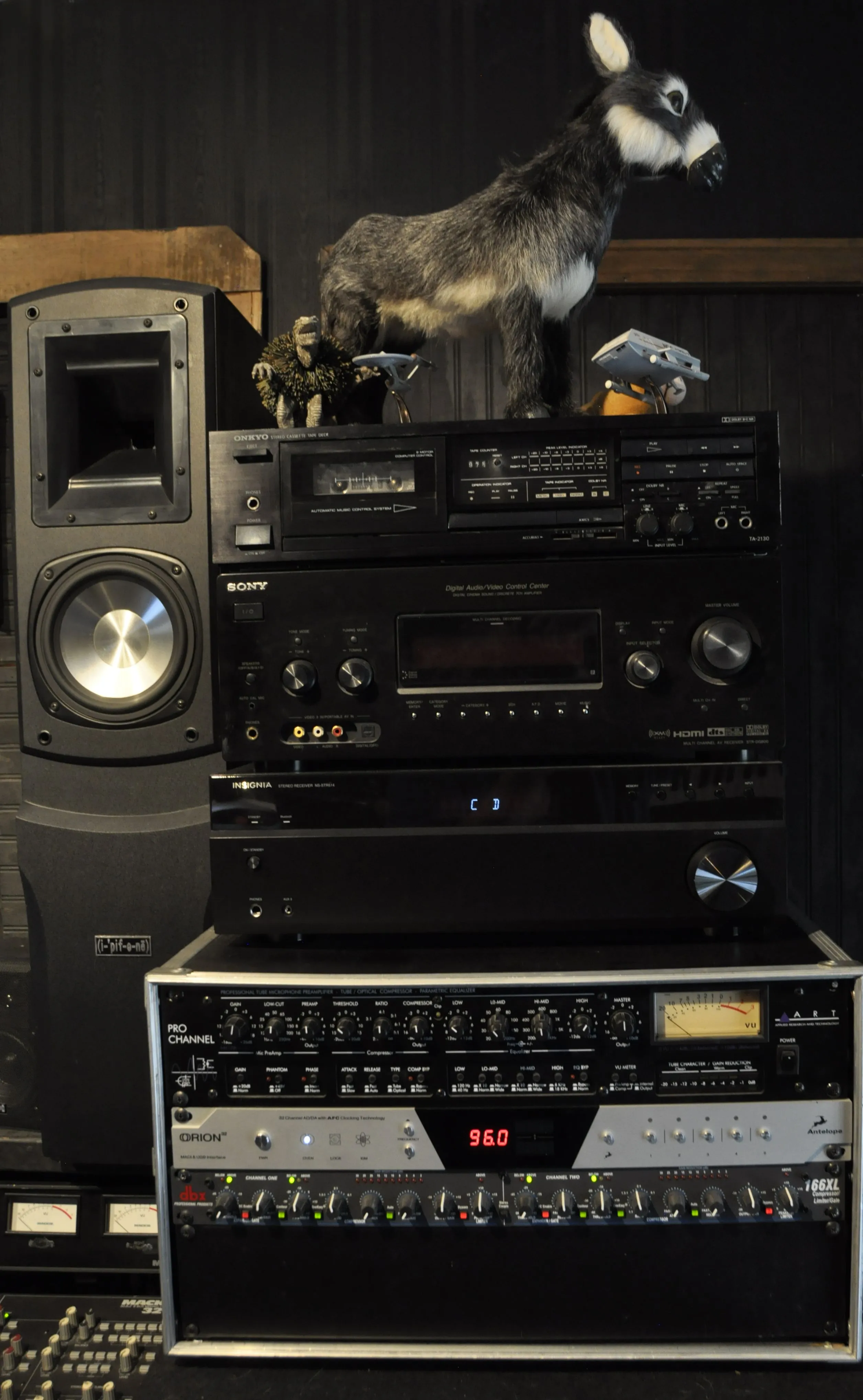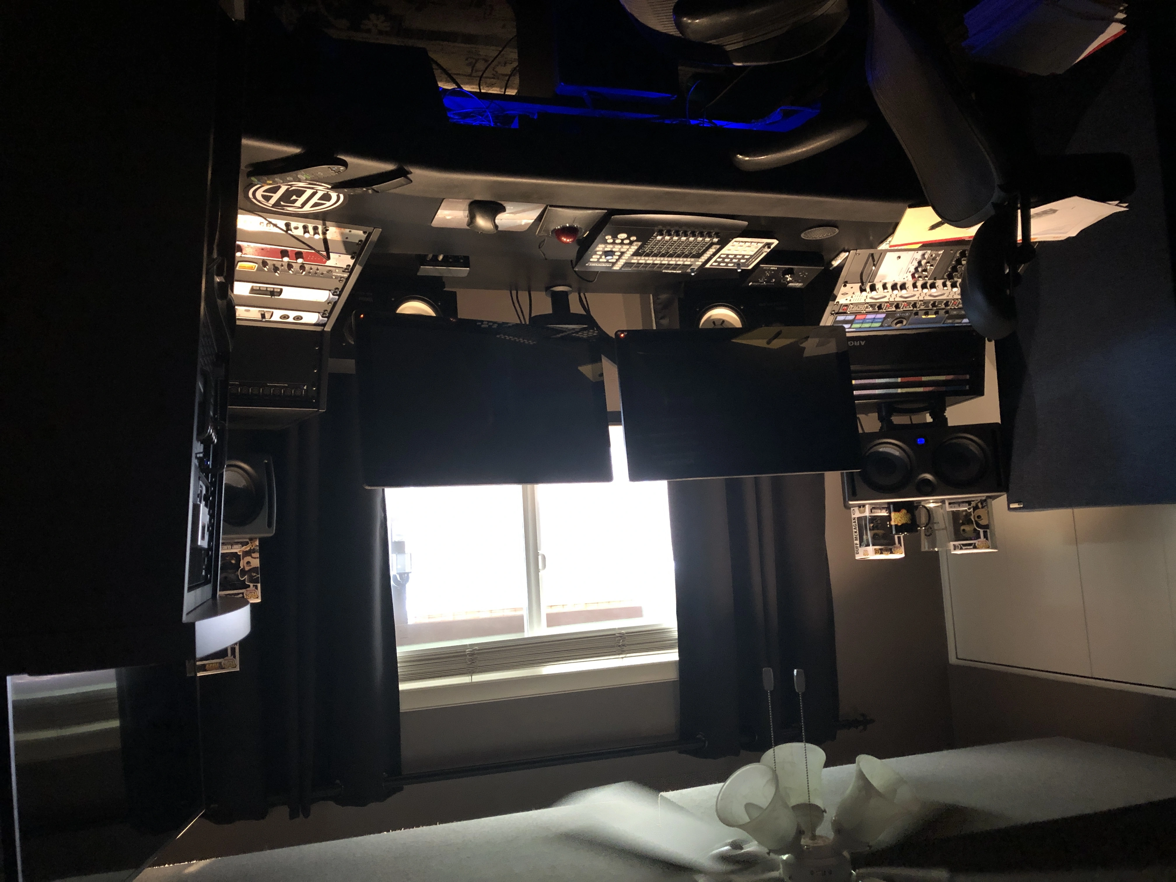 Here's my little analogue studio. Just a Tascam 488mkii on a keyboard stand. Upper rack has an 8 channel preamp and Sony wm-475 mix down deck. Then an old JVC receiver to run the Realistic Minmus 7's. I'm just starting out and wanted to do analogue on the cheap(ish, that 488mkii will run about $400 these days). Its fairly compact and sounds pretty good. I have a Boss ME-50 that's doing most of the outboard effects. I bought 100 20-minute tapes from National Audio Company a year ago, just before they ran out of chrome tapes. and cause of a mixup later I got another 100 tapes. They give 5ish minutes which is plenty for most of my songs. I can then label those to keep track of them. Using this as my only recording system at the moment. Cheers.