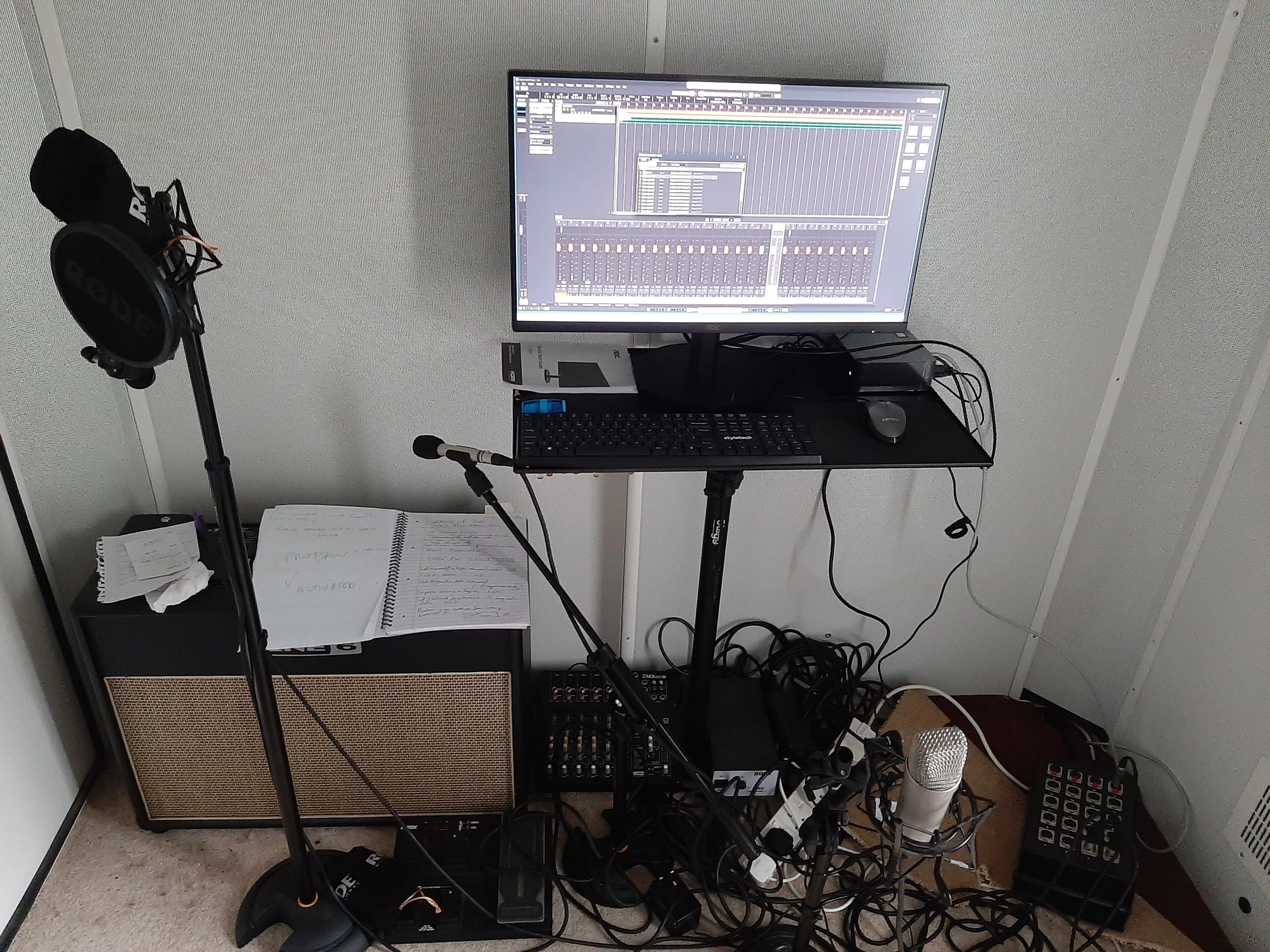 The knitted oven mitt looking cloths over the acoustic gtr sound-holes... is that to minimizes the guitar from vibrating from room sound? Or what?Newest photos of my studio. Not a lot has changed but I wanted to make the space more comfortable for just enjoying being in there, not necessarily working on anything. Plus as much as I love my tube amps, I never gig and I rarely play loud, so I upgraded (?) to a Spark 2 with Cab and a nice wine/bar cabinet from Menards to display my pedals.