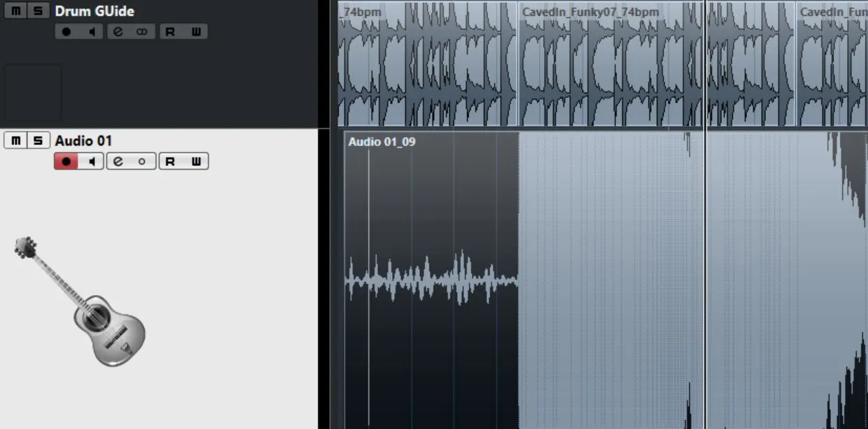 When I record the guitar, with the knob on the Tascam around where I've always had it in the past, the track is visually full from top to bottom. It is just a full block. It sounds fine, no distortion, however it looks distorted.