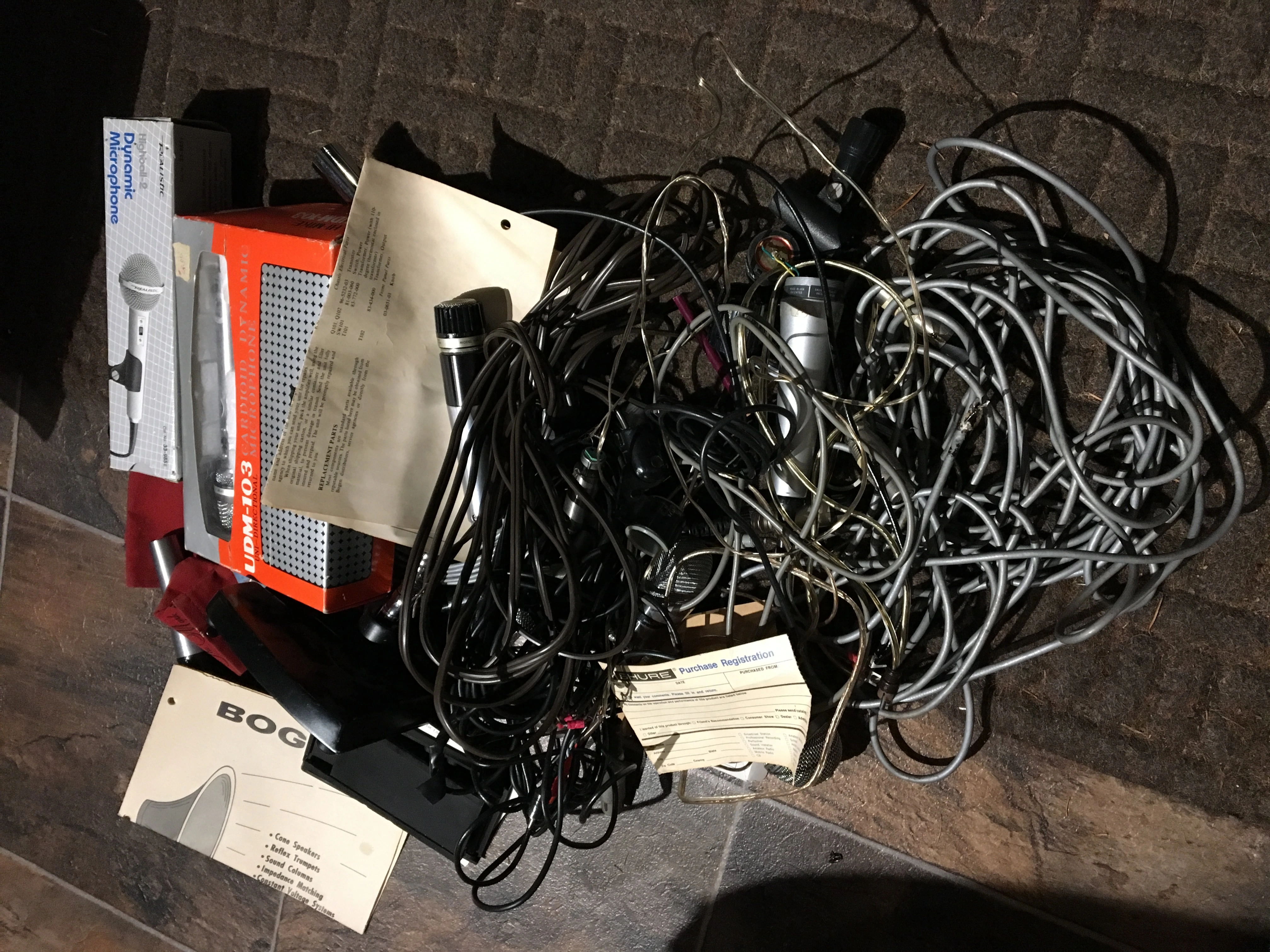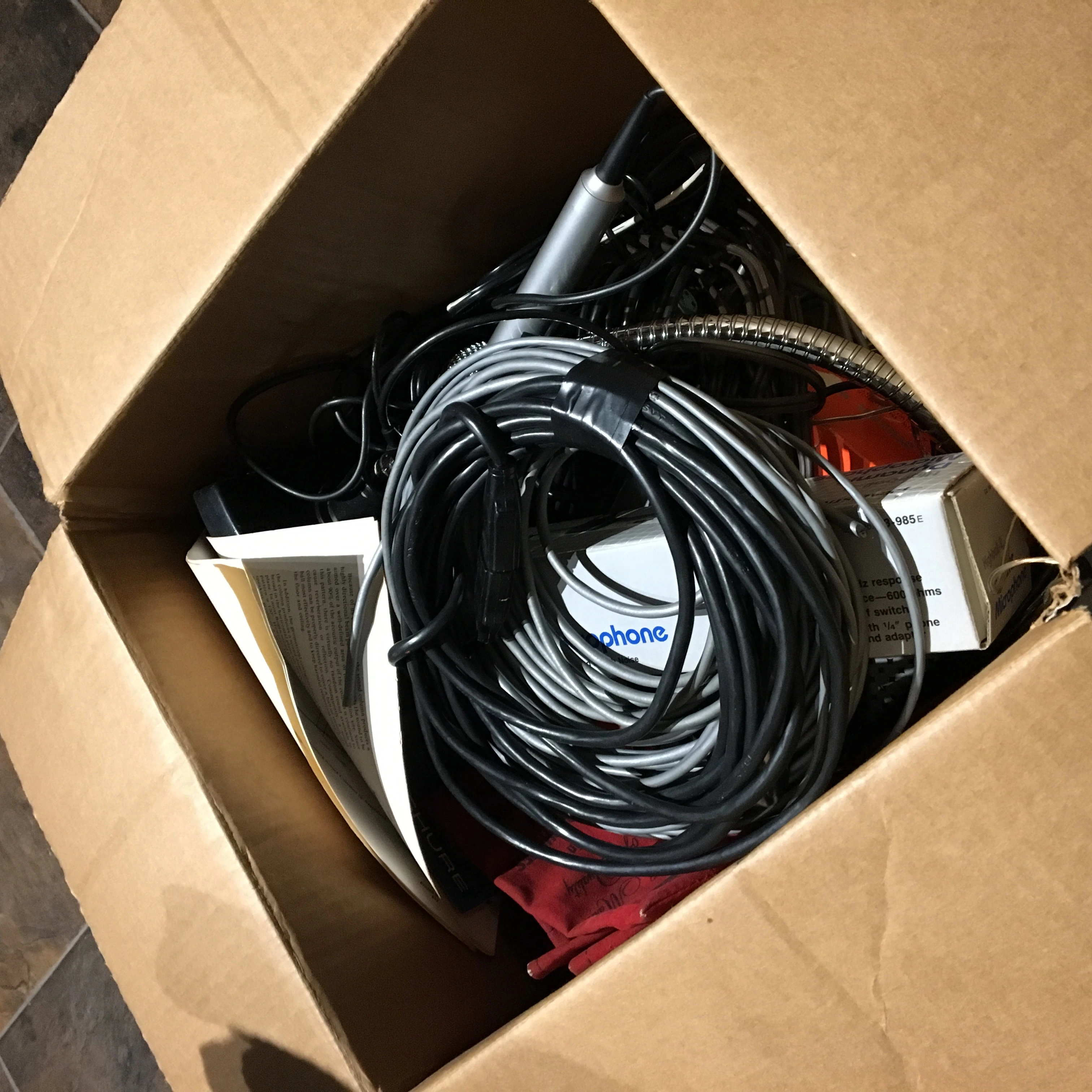 Much of it was junk...really cheap hi-z unbalanced mics (but I’m keeping a couple anyway), low quality bulk wire...stuff like that...the second box though was full of XLR-XLR cables of varying lengths, 7 long ones and 9 short jumpers, but all with good quality cable and genuine Switchcraft connectors...this is not to say the first box was a bust...there was this: