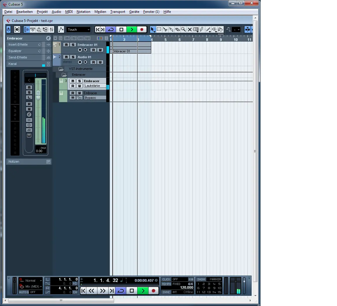 When the instrument is played there is no input signal in the transport field - only the output signal.