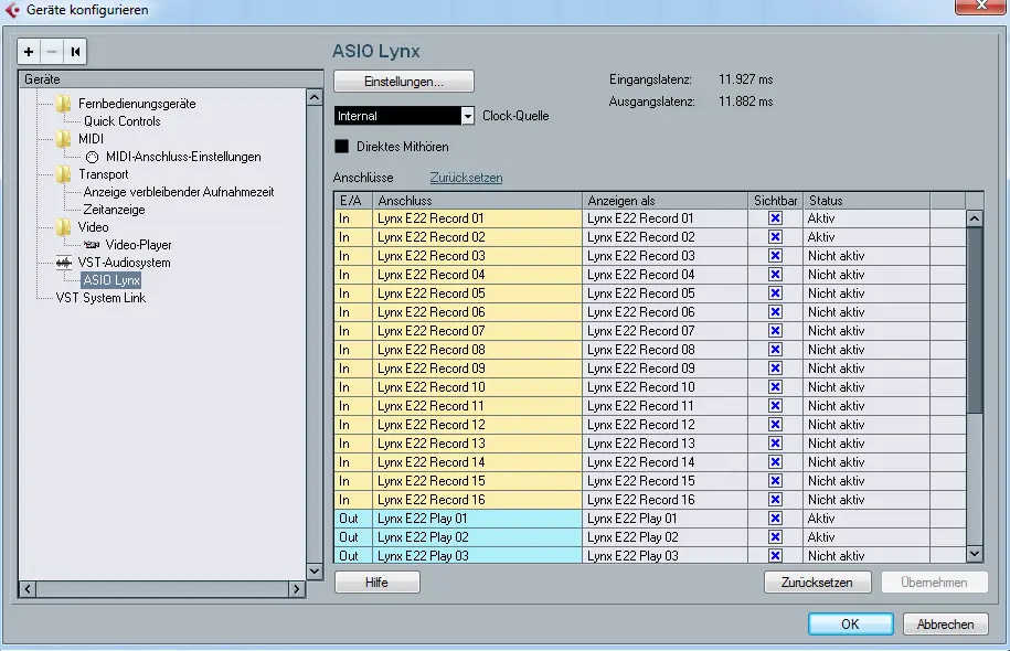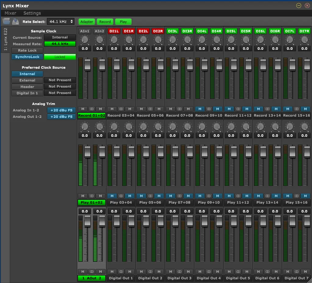 With the default Lynx mixer settings i can only record from the Analog input.