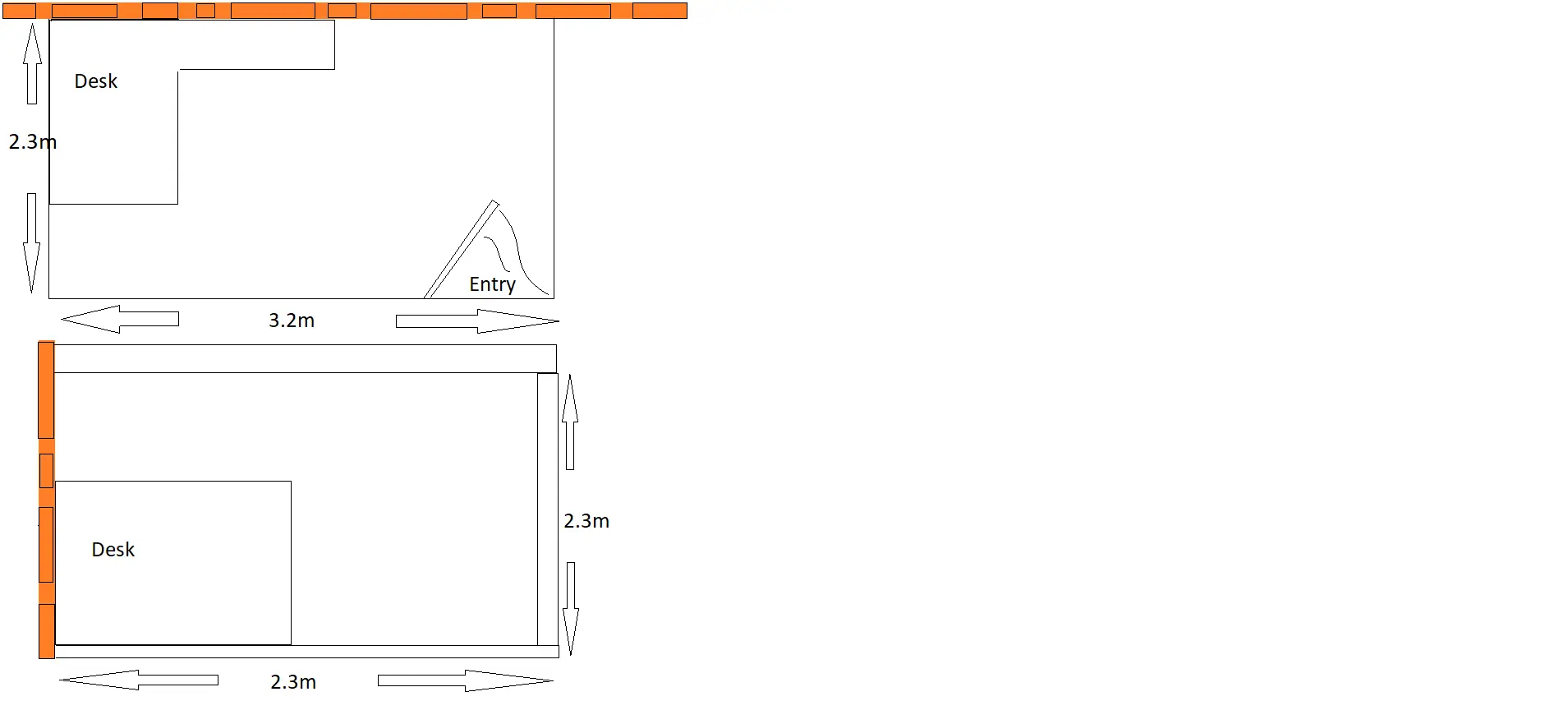 Edit: Excuse the terrible "paint job" of a design i did with rough measurements above.. but this is the general idea and space i'm working with. In my latest reply to this post as well, i've explained a little extra information in relation to this image.. (the orange is brickwork wall xD)