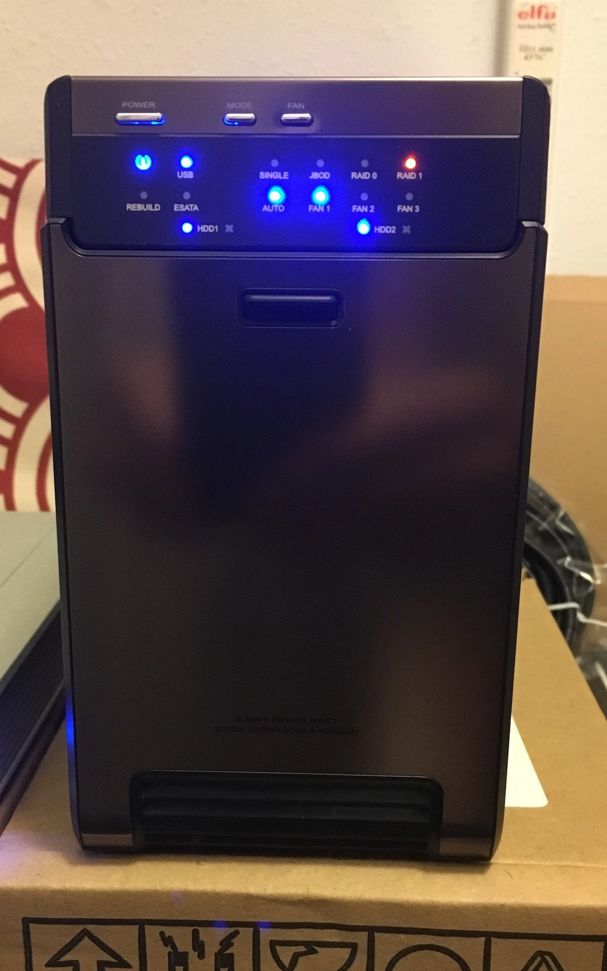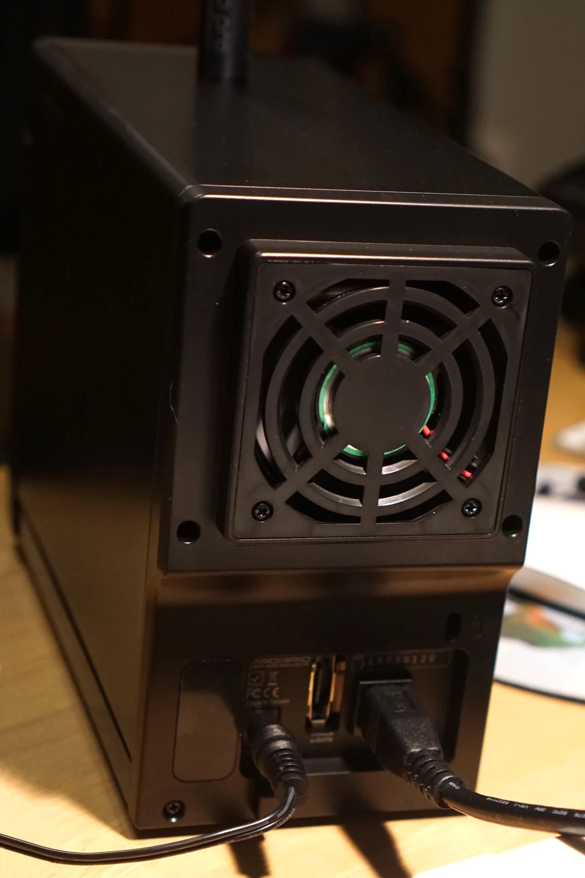 It's got a fan, which was another selling point, since I keep wondering about the fanless 2.5" rig - so much I actually have it running unenclosed. But, the fan adds a little noise, though I don't have SSDs so on a relative scale, both those spinning 2.5" drives are not quiet enough to keep sitting out. So, I've got the 2.5" RAID (for audio) sitting in a closet, and that's where the new one will go when the 15' cable I just ordered arrives. In the mean time I can just turn it off most of the time because it will only be holding video projects, and that's only something I tackle a couple times a month.