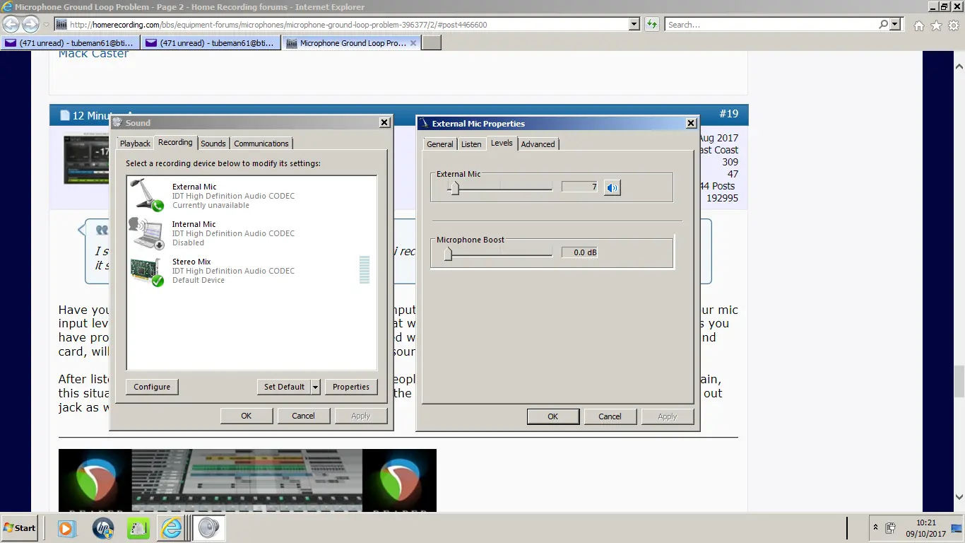 Im using a laptop, a condenser microphone with 3.5mm head, i attach it to a usb sound card for the usb input, and a ground loop insolator.(Note. when i link the ground loop insolator the microphone isnt picking up any sound)