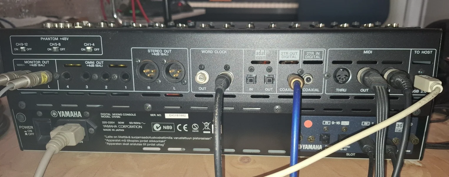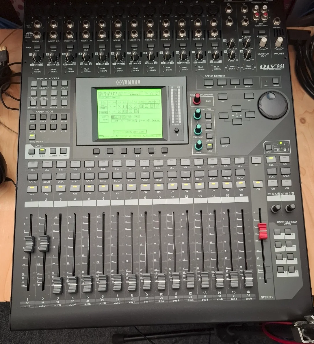 As i am selling all my studio stuff, not that often used, a 32 channel Yamaha 01v96i (the i stands for USB equipped) fitted with 16 port ADAT, plus Mackie SDR24/96.