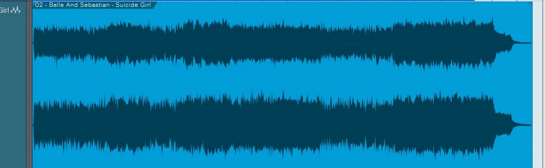 b) Suicide Girl has quite a clear snare but the waveform doesn't show peaky peaks like mine. Nor are they as narrow and slender. That's cool. I'm just describing what I see.