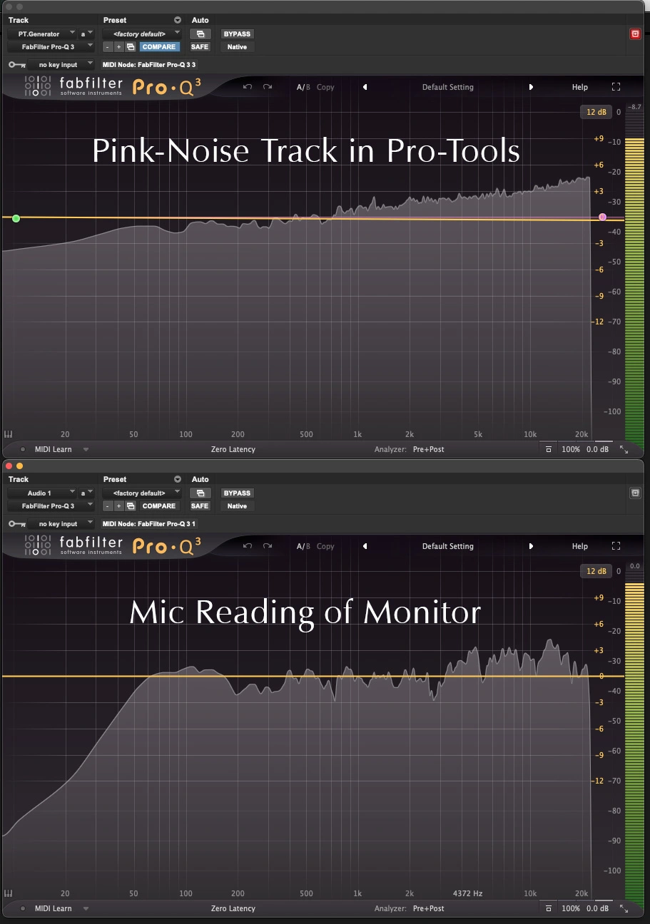 I’m struggling with monitor calibration and need some direction. I’m using KRK Rokit-8 monitors that have a HF Adjust and LF Adjust on the back. Those adjustments have little effect on this issue I’m posting. I have a pink-noise track in Pro-Tools that gives an EQ reading of a normal, steady, slightly ascending slope from low end to high end. Using a measurement mic, I’m getting an EQ out of my monitors with a distinct low-end drop, like an HPF is being applied. The signal is going straight out of Pro-Tools through my Presonus 32R for this test, totally dry. As a second test, I loaded the pink noise file into iTunes on my Mac, disabled the iTunes EQ, ran it out of the headphones jack and into the KRKs, getting the same results.