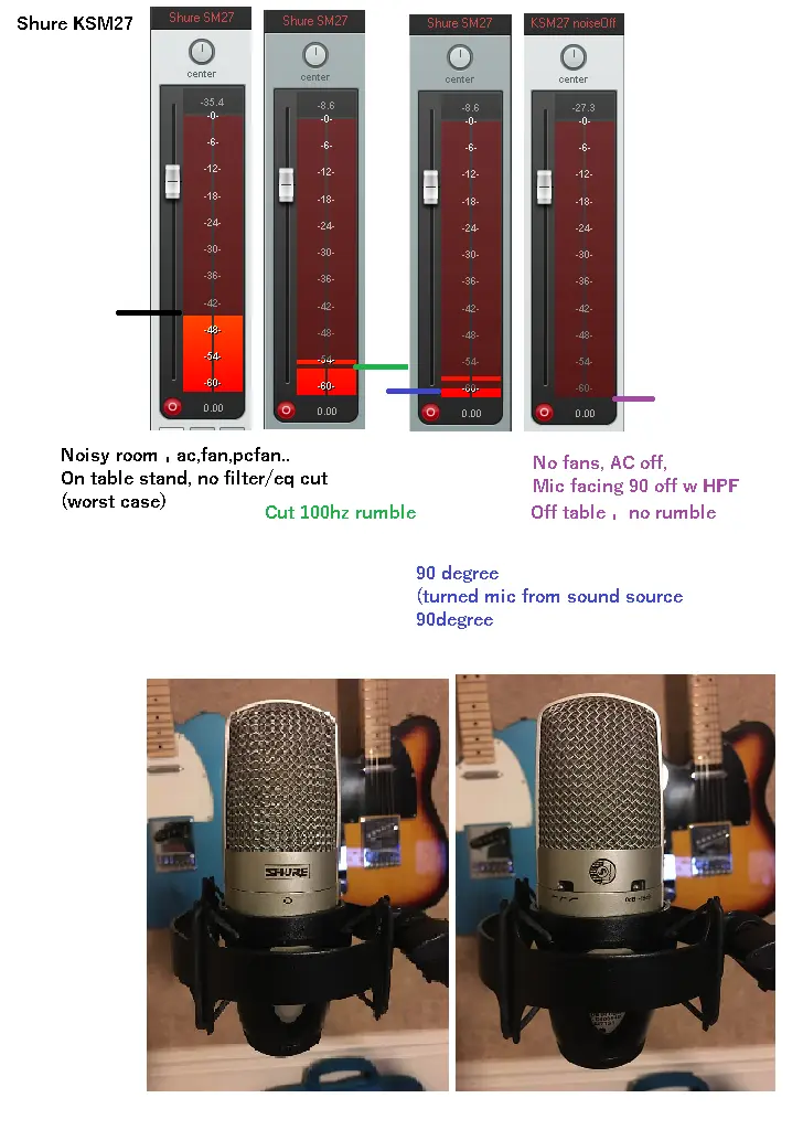 Its summer, the noisy rumble of the window ac is running, a floor fan too. The room is poorly done and not sealed from anything such as noise. Noise is what lead me to the SM7b, and pros' singing in the noisy control room etc. (which lead me to preamps and gain etc..because these things have no gain)