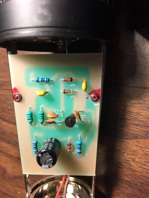 -Connect the capsule backplate to the junction of R12 and C12. There is a wire soldered there marked "B" on the back of that board that connects to a spot marked "B" on the other board. So all you have to do is move that wire to the back of the teflon turret where R8 and C13 used to meet and connect the backplate wire to the front of that turret.