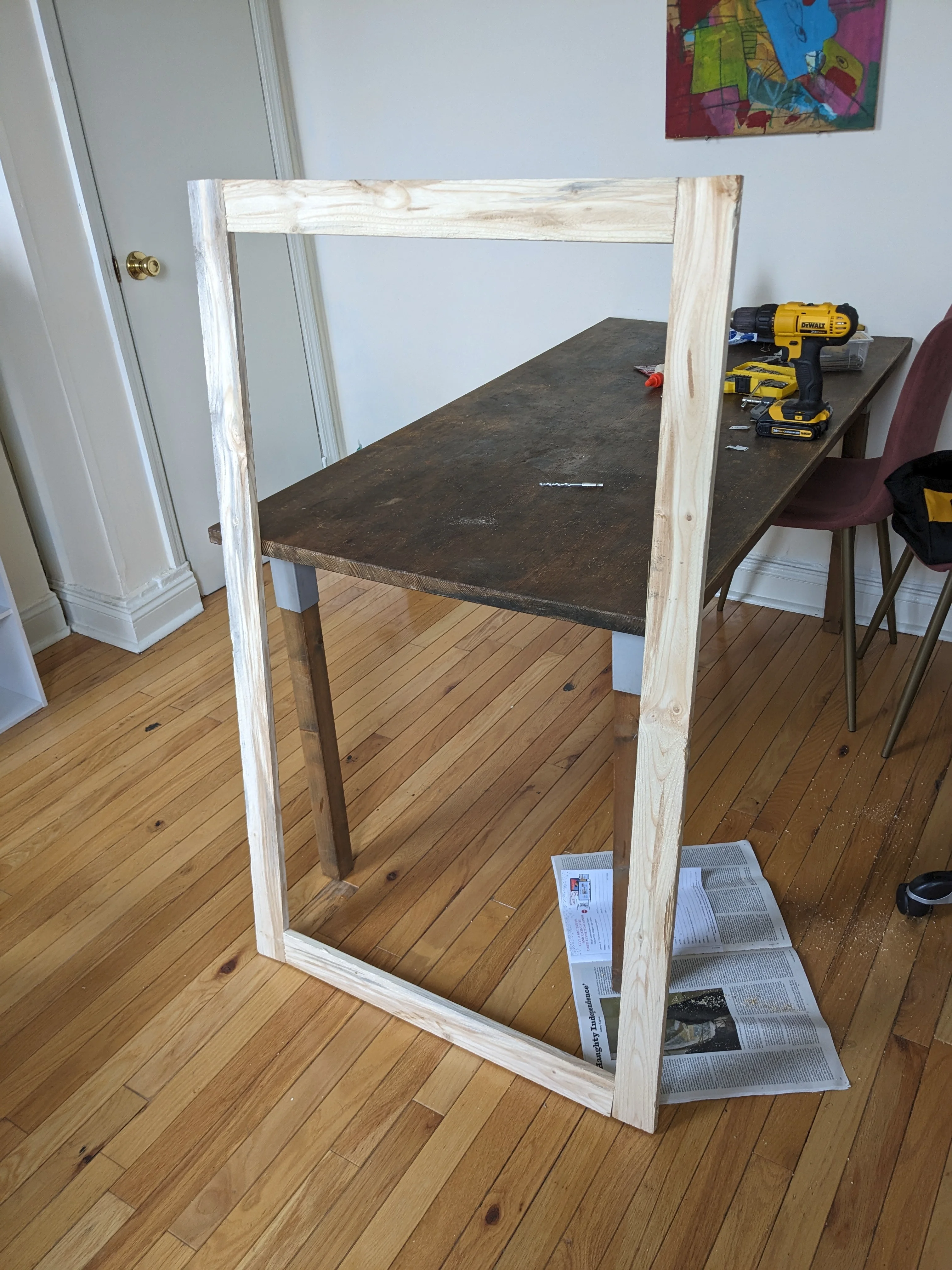 3. Drilled the lumber together to make wooden frames, installed hooks on inside of frame towards rear.