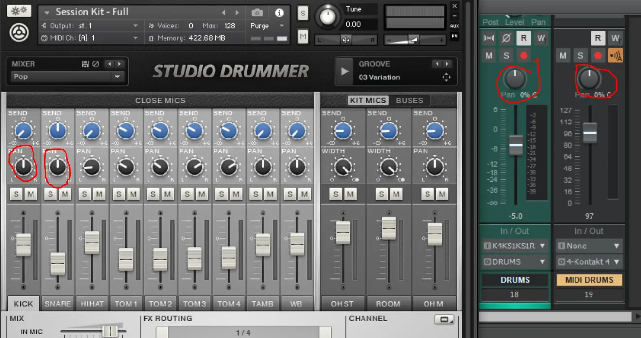 This (drums only) has a nice, centered core and a relatively wide and sparse stereo image. The mix has no core - just a hard left and a hard right.