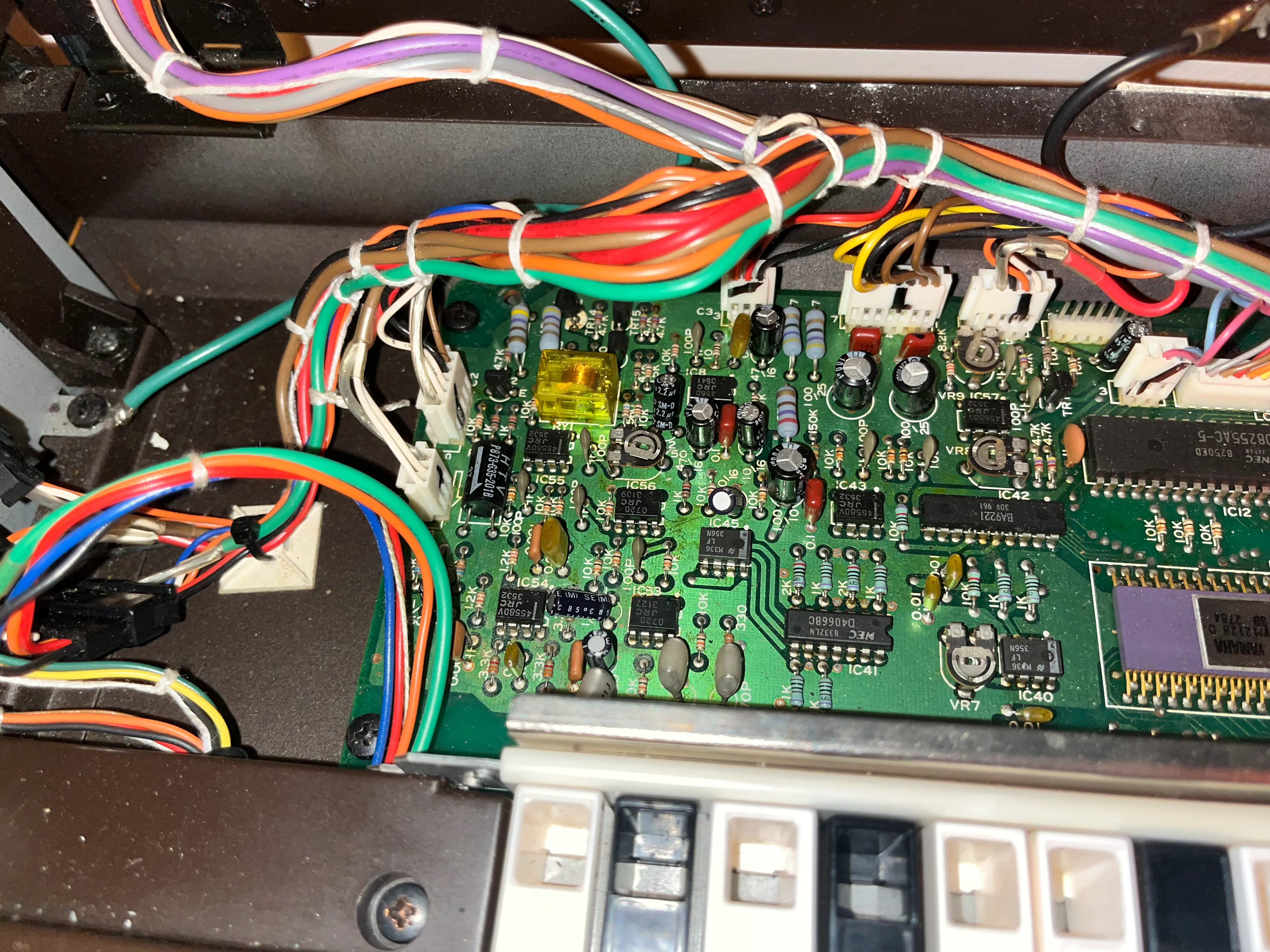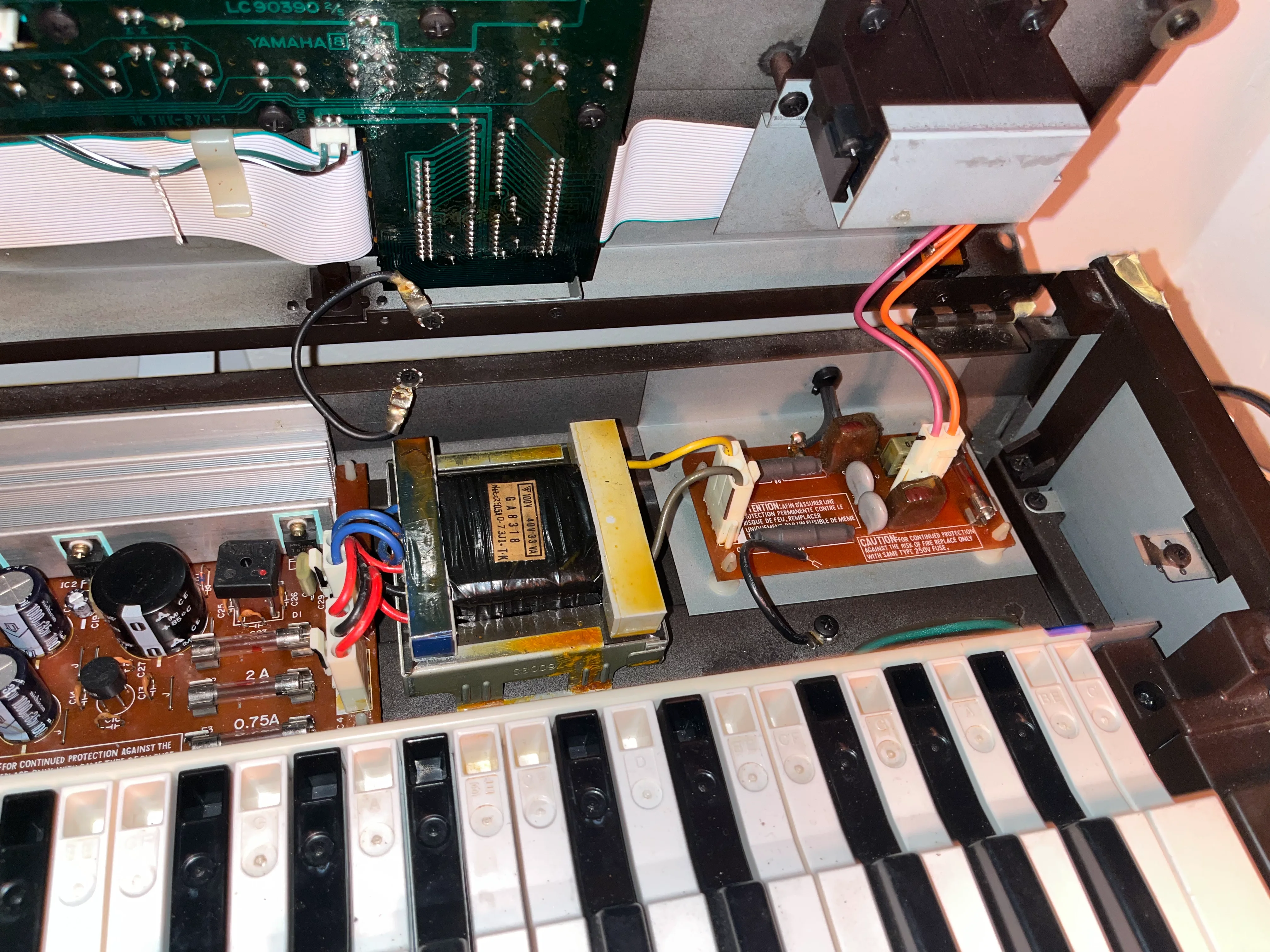 Hello my Yamaha dx7 (Mark 1) wont start up suddenly? ive had it and used it fredquently since i bought in 2017 from japan (I live in sweden but use a transformer to convert the power to european voltage) ive never had any problems like this before with it? think it could be problems with the c10 condensator or maybe a crack in the soldering joints or might it be anything else? would really appreciate any help with trouble shooting whats wrong with it cause i use it all the time! ive checked the fuses with multimeter and they´re fine at least! Any help would be appreacited