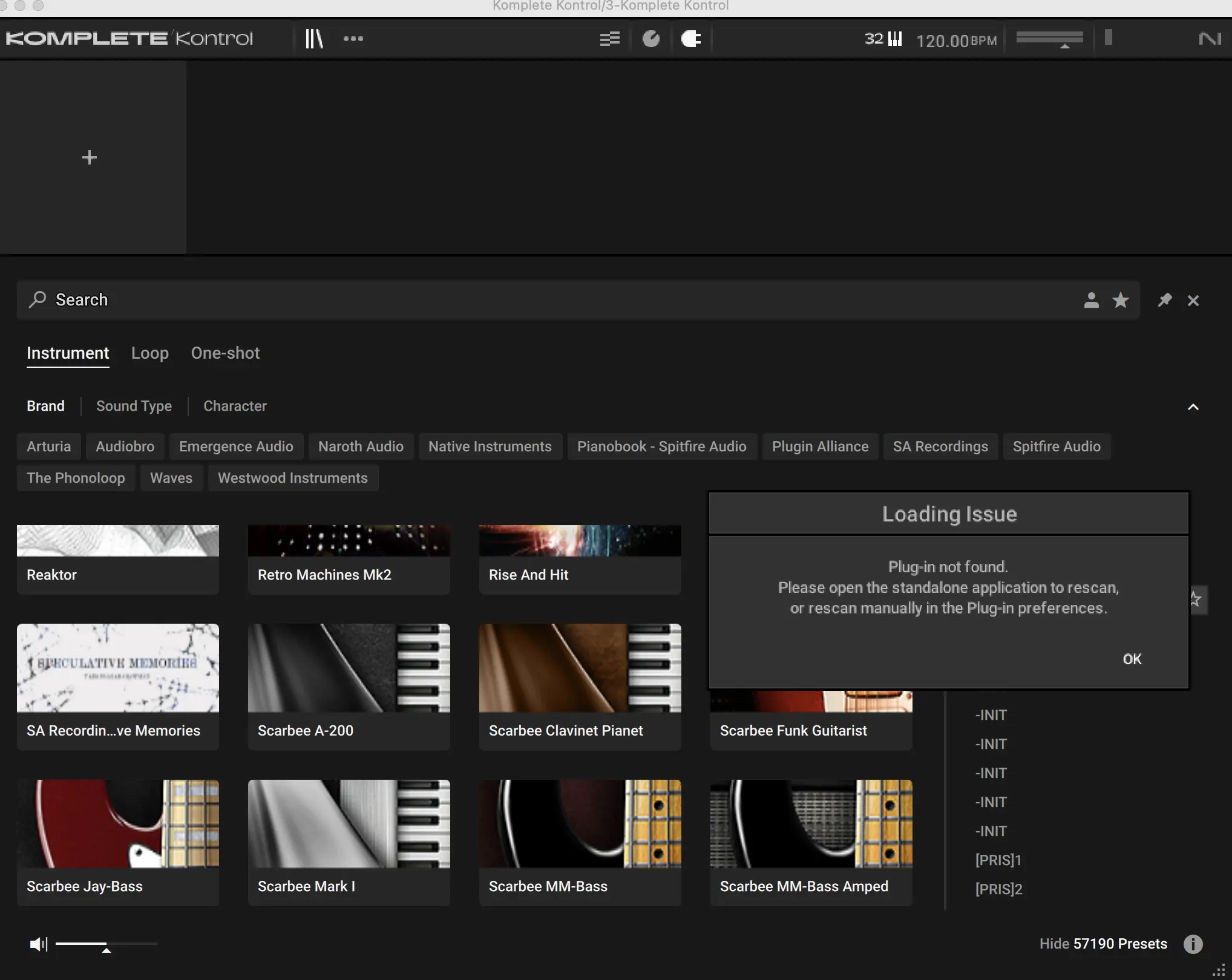 Plugin not found. Please open the standalone application to rescan, or rescan manually in the Plug-in preferences.