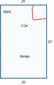 Red area is where the closet will ideally go. My truck is usually parked inside, so I am hoping to make the closet the right WxL to get the truck in ~20ft long. This leaves me 12ft for the closet in length if needed.