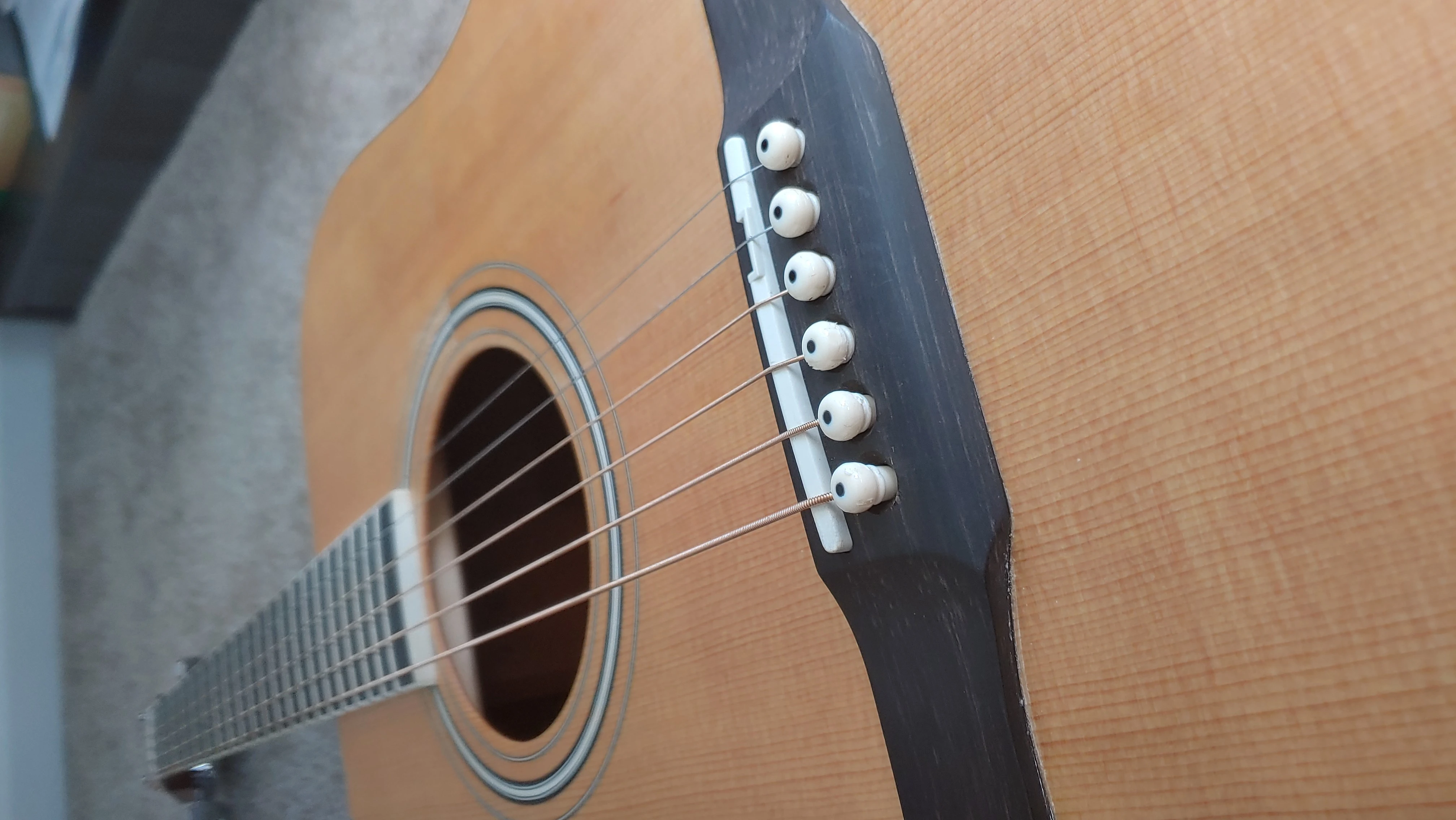 For 39 years, I've only had the 70's Sigma acoustic my dad bought before I was born. I'll admit I was terrible at maintaining it - by terrible I mean I didn't. Ever. Welp finally the tuning mechanism on the D string broke. I tried to drill a nearby hole but was out of room due to some previous attempt (can't remember who) to fix it. I couldn't move it medially too far because then you wouldn't be able to turn the tuning knob, and laterally it was already filled with holes that were too wide and stripped. In addition, the saddle is severely chipped. There are also major intonation issues. A nearby luthier will fix the tuning mechanism and saddle for under $100, but I figured it's time for a new acoustic already. I'll fix and keep the old Sigma for nostalgic reasons, but wanted to get something new for recording.