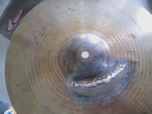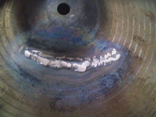 Hey everybody, I've been lurking here for a while, decided to join, and share. I don't have much in the way of recording knowledge but I can repair cracked cymbals, here is a pic of a Sabian AA metal X hi hat top that had a 4 inch crack along the lathe grooves, I TIG welded it. I thought it was cool, so shared it on my first post