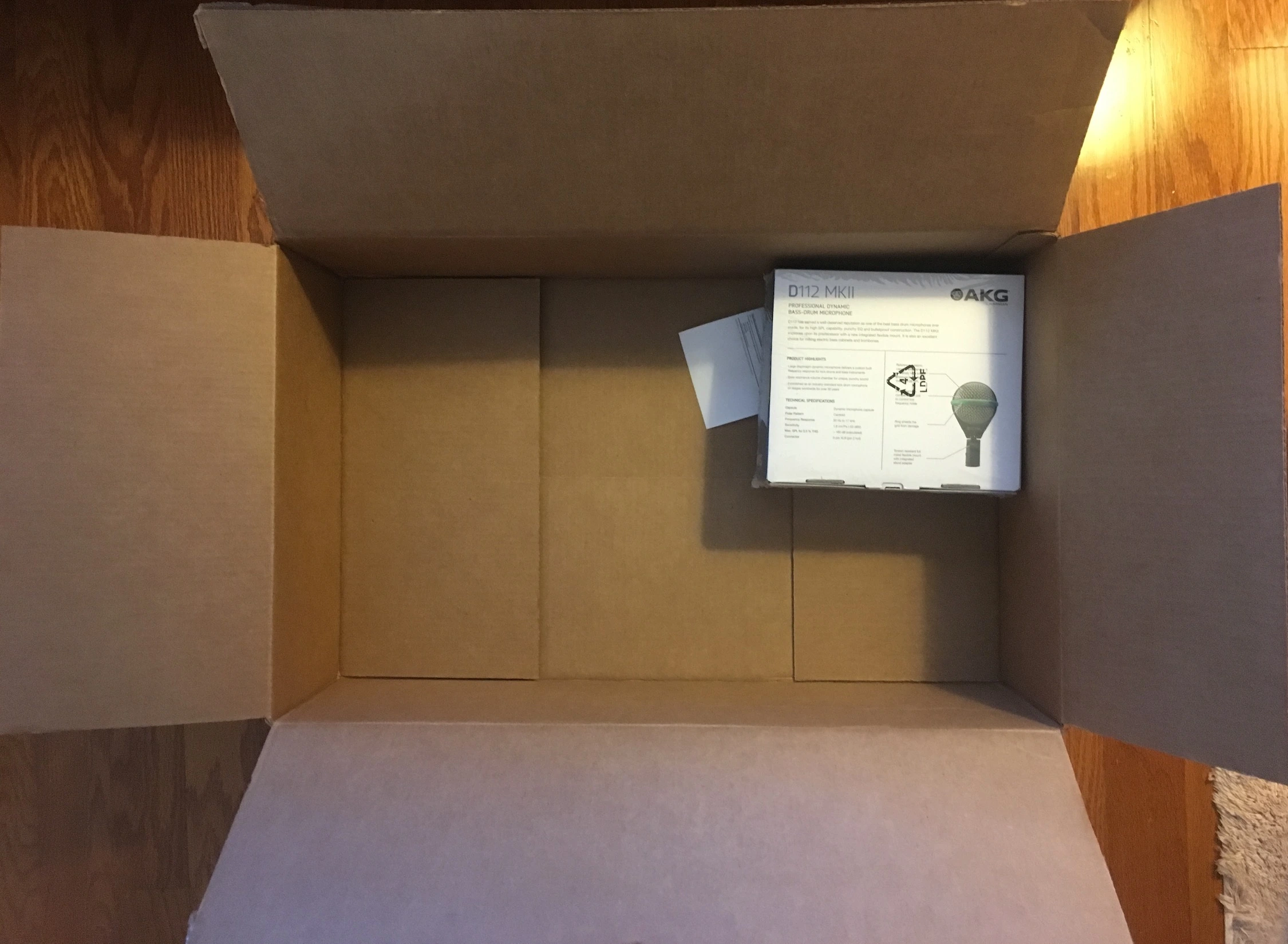 I got a "demo" AKG D112 (mkii) just because I never have really had a kick drum/bass-specific mic and this was cheaper than even the lowest price used version on Reverb. As I expected, it's in the original shrink wrap so just someone clearing out inventory. (At least 50% of my experience with demo/open box purchases turn out like this.)
