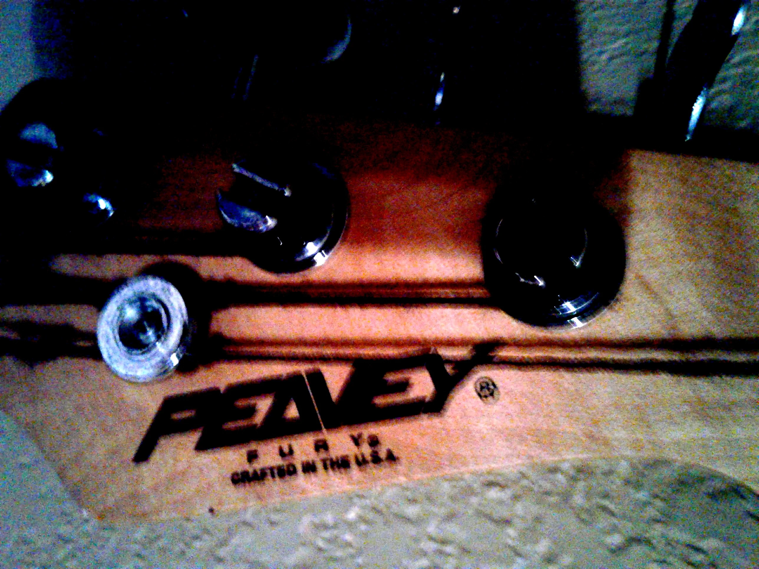 Peavey Fury USA version. Someone did a cool blue stress job on it and added the thumb rest.