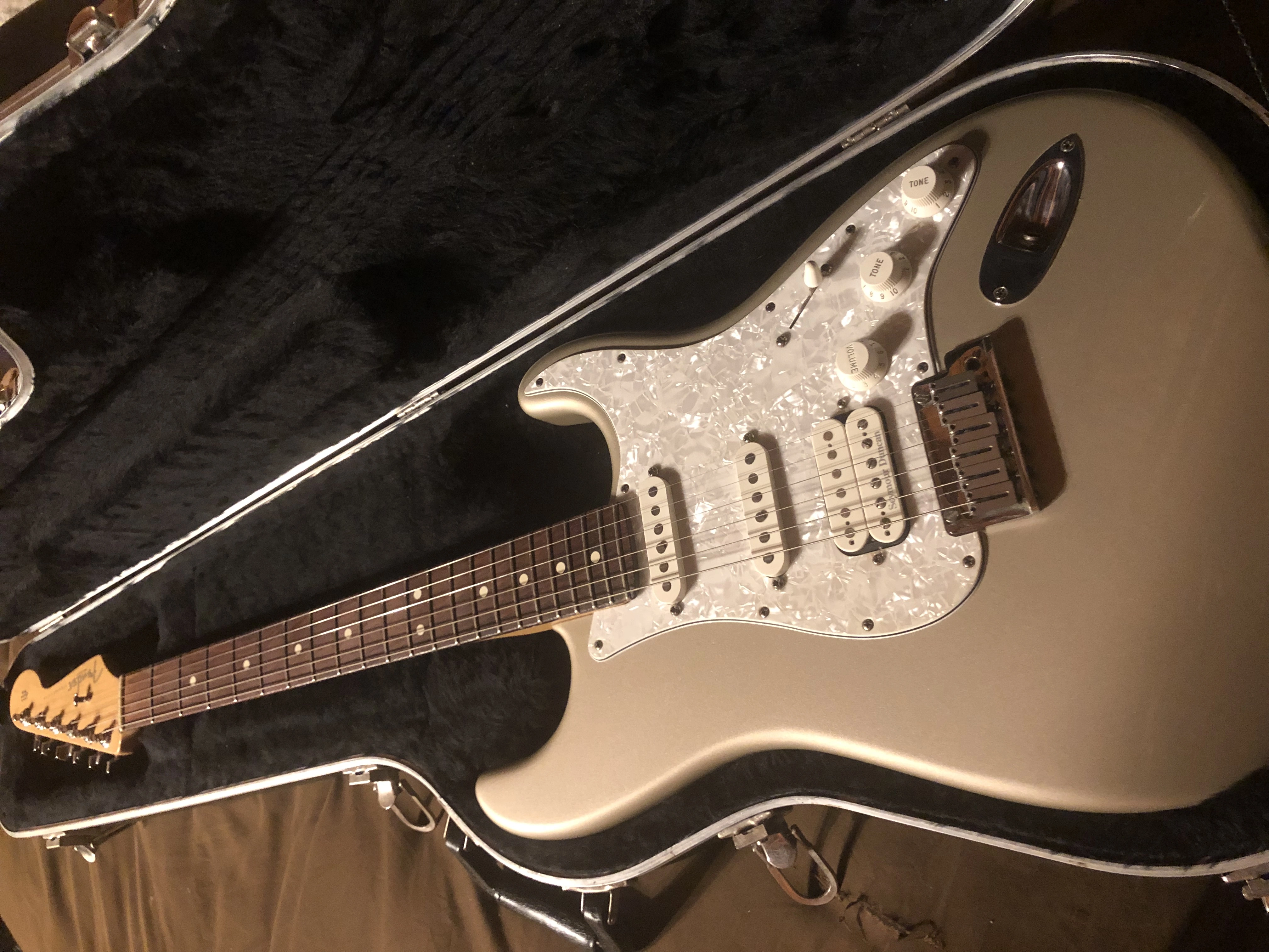 Version 2: American Series Fat Strat Texas Special (July 2000 - July 2003) - receives all upgrades associated with the American Series (rolled neck, staggered height tuners, 1 string tree, etc) but still has the Texas Specials and Duncan Pearly Gates. Still has special colors and pearl or shell pickguard.