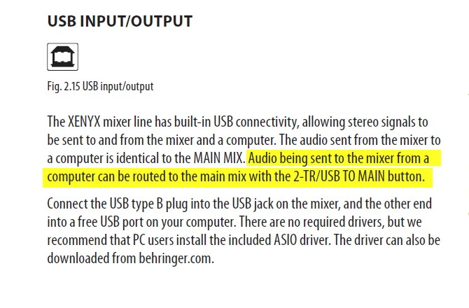 You will also almost certainly need to go into the Windows Sound menu and select the mixer as the Default audio playback device and possibly set the level to max. There is a "tinkly" test signal. NB the mixer might show up as a weird name? "USB CODEC" or some similar ***t.