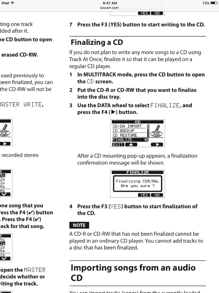 Here's the issue. The CD won't play on anything but the DP-03. Nope, not on my home computer, not on in my vehicle. I know vehicle stereos can be finicky...and perhaps there's a driver or something I need to play it on my PC...so I can download it and toss it on my social media page so my friends can enjoy. I'll be happy to provide what I can about my PC. The CD player in my AMD computer is a Hewlett Packard HD CDDVID W SH 2160B. I'm not a techno geek, but it appears the disc player in the PC can't read the disc burned on the portastudio. The Tascam unit reads the disc...? Discs are Imation CD-R 1x-16x.