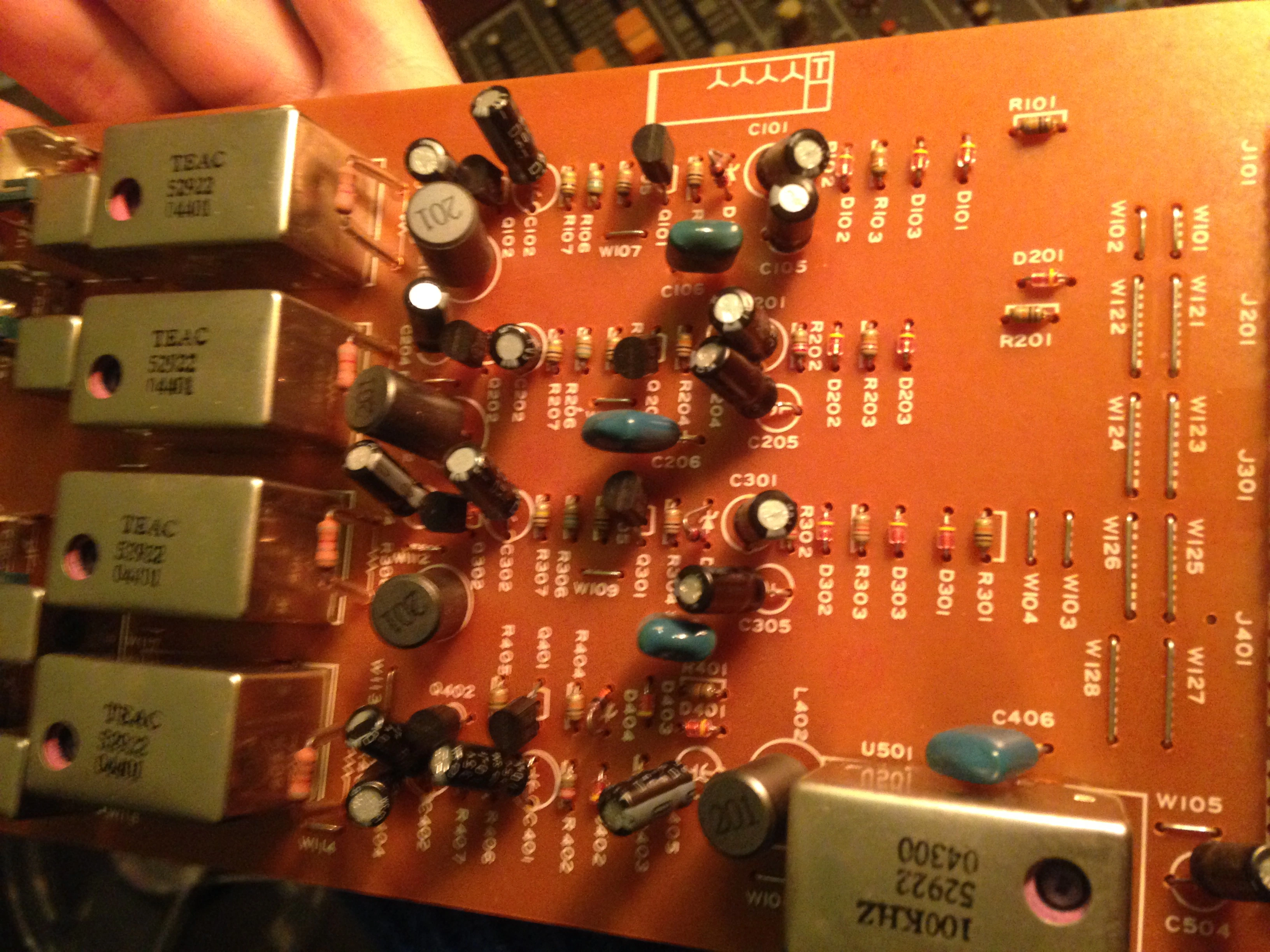 I hoping someone here might know what has happened? I guessing I've made the machine work too hard due to the tension arms coming slightly out of alignment over time. I wish I could replace a component at W123 and W124 but there's nothing there, its just a bridging wire. So if I've toasted something it's further up right? If anyone has any idea of what other PCBs to scan for damage that would be a big help too.