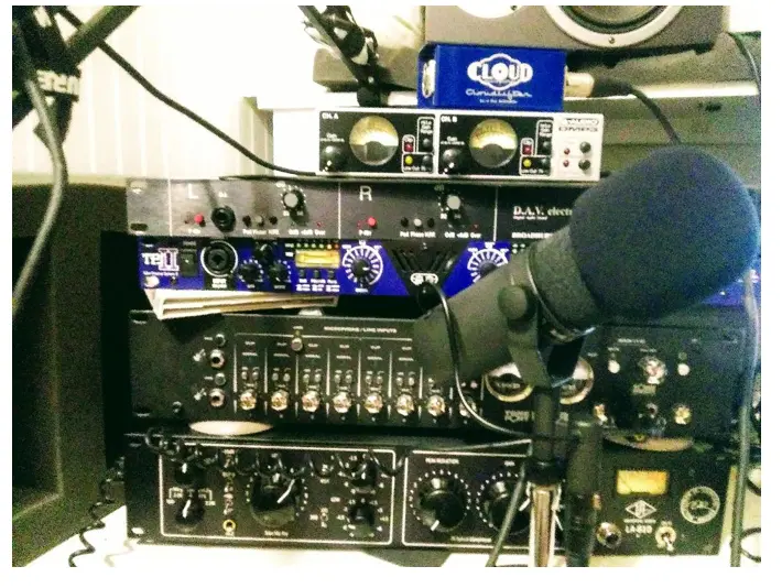 SM7 and me... in to the Cloudlifter, the DAV BG1, DMP3, ART TPS, LA610...and the interface pre and interface pre+plug realtime preamps.