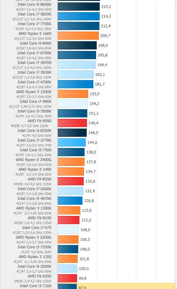 I don't know where you live but here in Canada you can have these 2 CPUs that are ones of the cheapest cpus and are high on the benchmark: