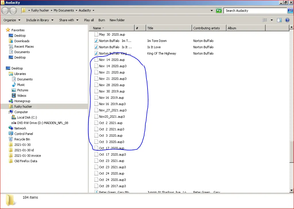The people at the Audacity help forum either have no clue or they don't care. The AUP files have changed to .mo files and I need to recover the missing AUP files. If anybody knows what to do in this situation please let me know. You can see the problem in the attachment.