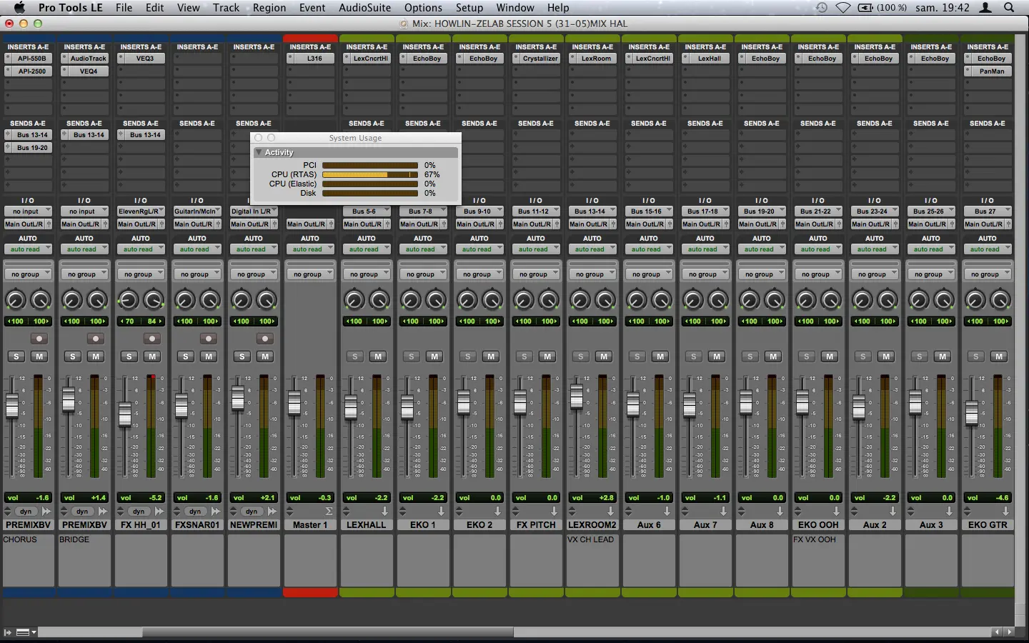 I Premixer drums and effects channels then integrate the 29 vocal tracks.