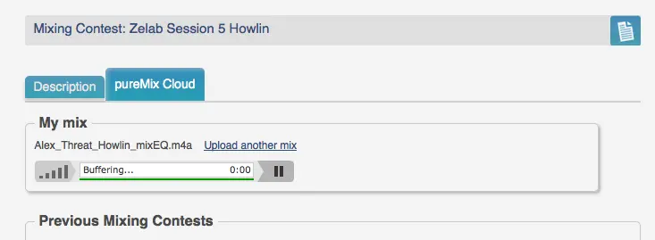 Is anyone else having trouble playing back their upload? The "Ben mix" plays back fine in my browser but when I try to play back my mix the buffer appears to load with a green progress bar and then never plays. I just want to be sure the file's been uploaded.