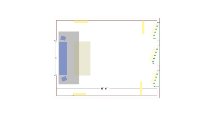 I'm currently putting together a small home recording studio, and I have a few questions. It's primarily for myself (piano/guitar/vocals). The room that I have to work with is rectangular. Dimensions are 11' 10.5" x 15' 11" with a 7' 8.5" ceiling. It's a bonus room above a garage, and it's the only room on the second floor. It's NOT a typical bonus room with 5 foot "knee walls." There's only a small diagonal (~6 inches) at the top corner of each side of the room. You can see it in the pics. I assume this will not hinder anything at all acoustically, but I may be wrong. The window on the far wall is 5' 7" wide. There are two closets, one to each side of the entry door that leads to the staircase. You can see all of this in the pics as well. The room is carpeted with standard residential low pile carpet. I know this probably isn't ideal, but I don't have the ability to lay hardwood or snap laminate at the moment. My questions are aimed at getting the best results I can with what I have to work with.