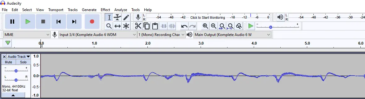 The vinyl sounds alright, maybe a little muddied depending on the disc, but the audio recording does not look right. The recording looks weak and thin, and does not have the substance I would expect. Every video I've watched of ripping vinyl shows a normal looking audio signal coming in. Has anyone seen this? I feel like it's probably a simple setting or something I'm missing. Recording at 44100 Hz, 32-bit. Tried both Mono, Stereo, fooling with the input/output levels, changing some cables, records, and even cleaned the needle and discs.