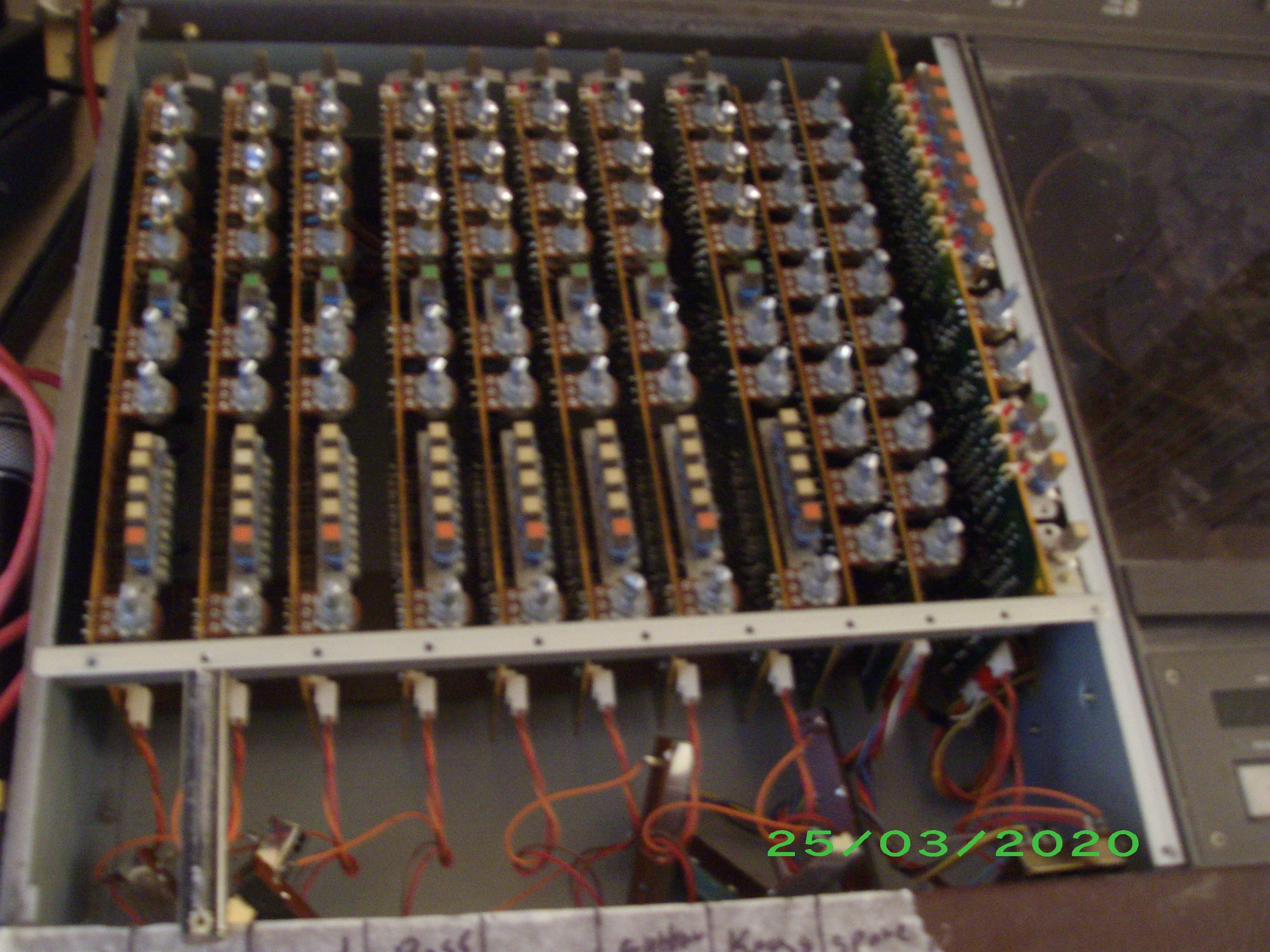 The monitor amplifier PCB isn't a plug-in PCB, so you can't re-seat it like the PCBs in the upper cardbay. You *can*, however, re-seat the *connections* to the PCB. Tip the machine on its side and remove the bottom cover to access most of the connections, including the buss PCB that spans across the bottom of all the mixing section PCBs. Any connections you can't readily get to (if any...can't recall off the top of my head) may require removing adjacent PCBs, or partial removal of the monitor PCB itself (remove the buss PCB, all connections you can access, remove the pot nuts and any screws fastening the PCB to the dress panel, and slip it down as far as it can go to hopefully access any remaining connections).