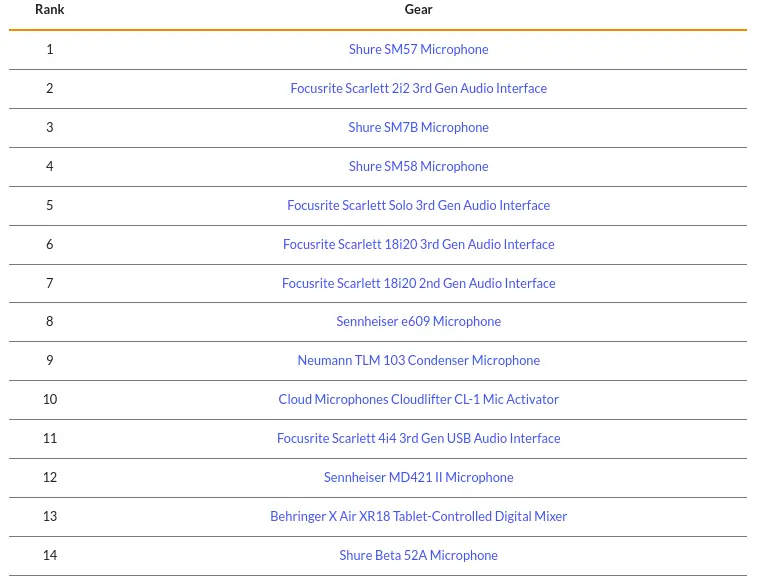 I didnt get the whole list but interesting Shure, Focusrite showing "reverb used/new action"