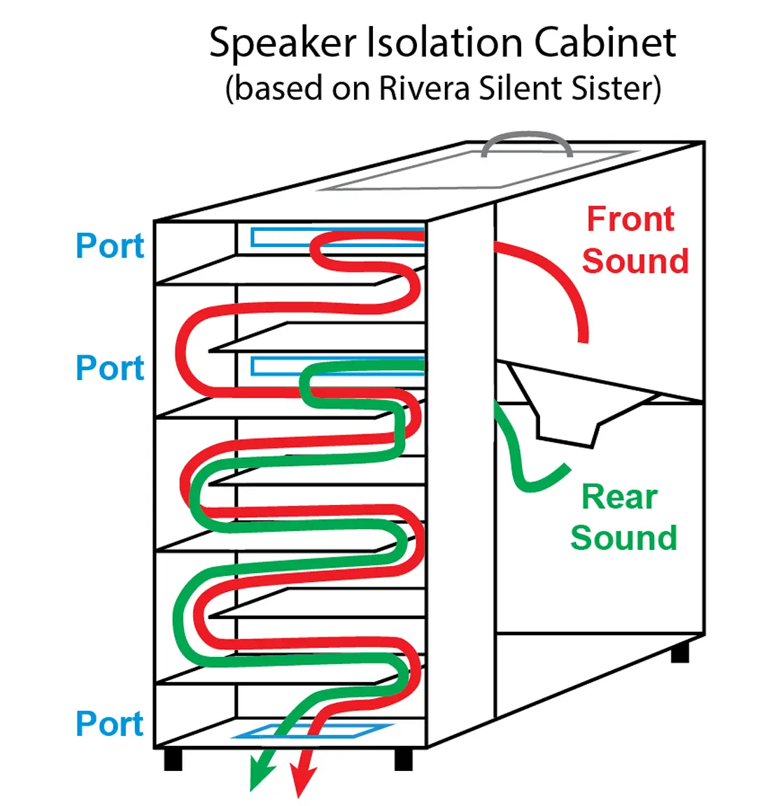 Thinking of building a speaker isolation cabinet. The Rivera Silent Sister (SS) seems clearly the best design for a smallish solution. (I'll probably make mine a bit bigger.) Just wondering if I have his basic plan right? Can anyone who has one tell me? (See drawing.)