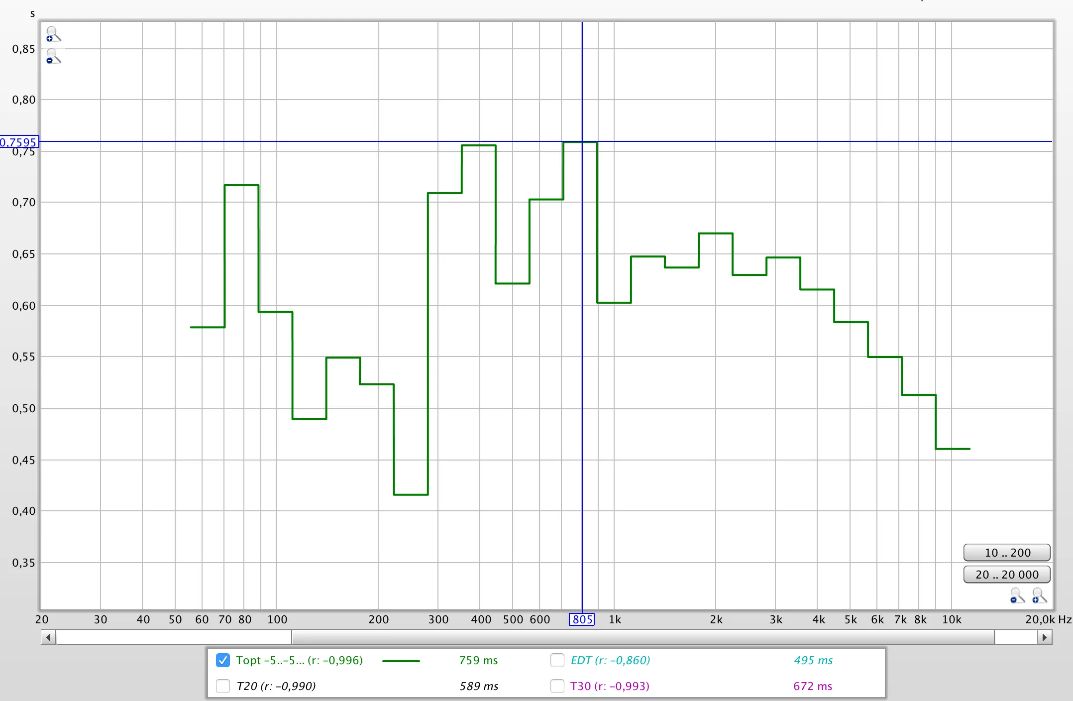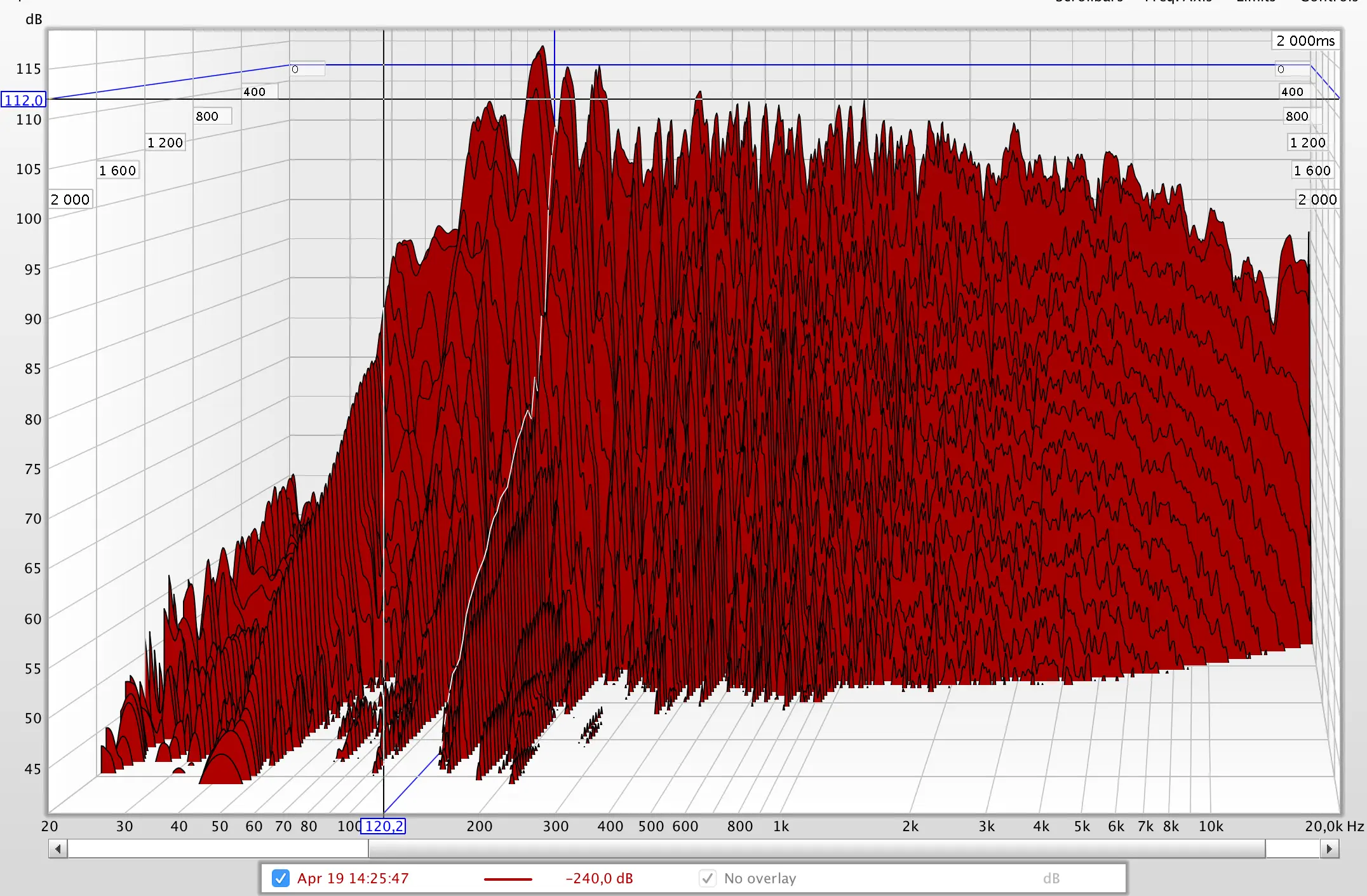 Included are pictures of the SPL & Phase, RT60 and the Waterfall. Also included is a zip file of the actual REW measurement so that you can have a closer look.