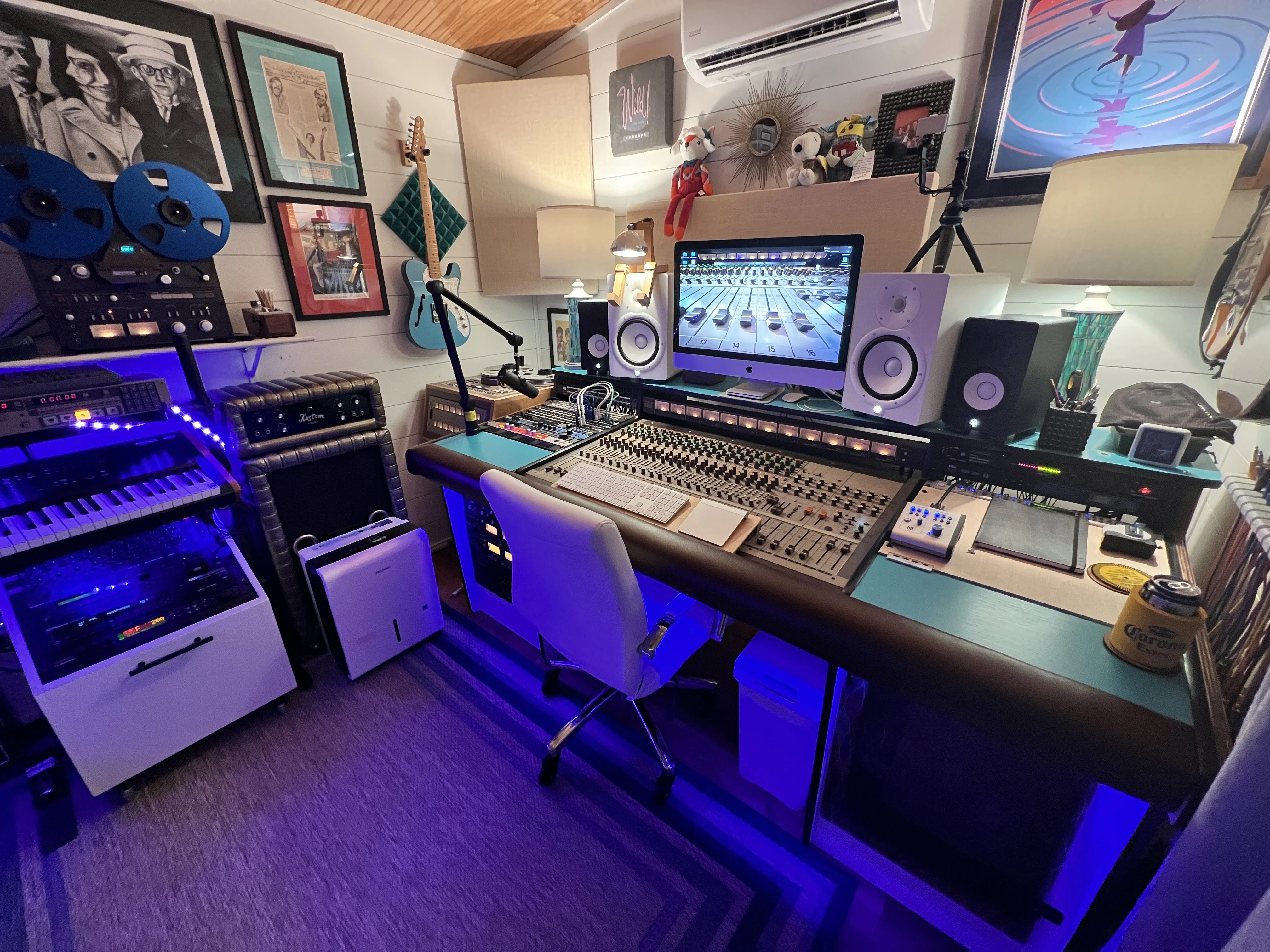 Here’s what I humbly mean by my hodge-podge beats yours…my hallway of hodge-podge. Yours has been out of order for three weeks. Mine, for a variety of significant reasons, has not been IN order for many years. I’m finally into a relatively usable space this last year, albeit still a bit of a challenging space…barely 8’ wide…but the ceiling is vaulted, and it’s the best space I’ve had for over a decade…first time I’ve had a space with all the gear cohabitating in that time, so I can finally work on setting things up. Some months ago, after some renovations, I got everything placed. Then determined, after some more months, it was completely dysfunctional…rearranged everything. So I’m back at square one, but the major components are placed where I want them, and I’m in process of moving things around in racks, and then can begin building all the snakes and wiring up the pathways. Discretionary time to work on all this is very limited. At any rate, here’s hodge-hodge hallway:Sweetbeats, that is what I was referring to. It's an immediate New Year's reso ?. My space is a hodge-podge right now. It's been out of order for 3 weeks- I have these new racks (very low) and much less rack space, and I'm still working out how to manage it, what gear stays, and what is put in storage, and where to place/mount gear differently. I have a roomful of gear without a home right now. I have new reels of tape coming tomorrow; I need to get this space in order. Here is a shot tonight... I want to get the 58 off the rack and into it's own.