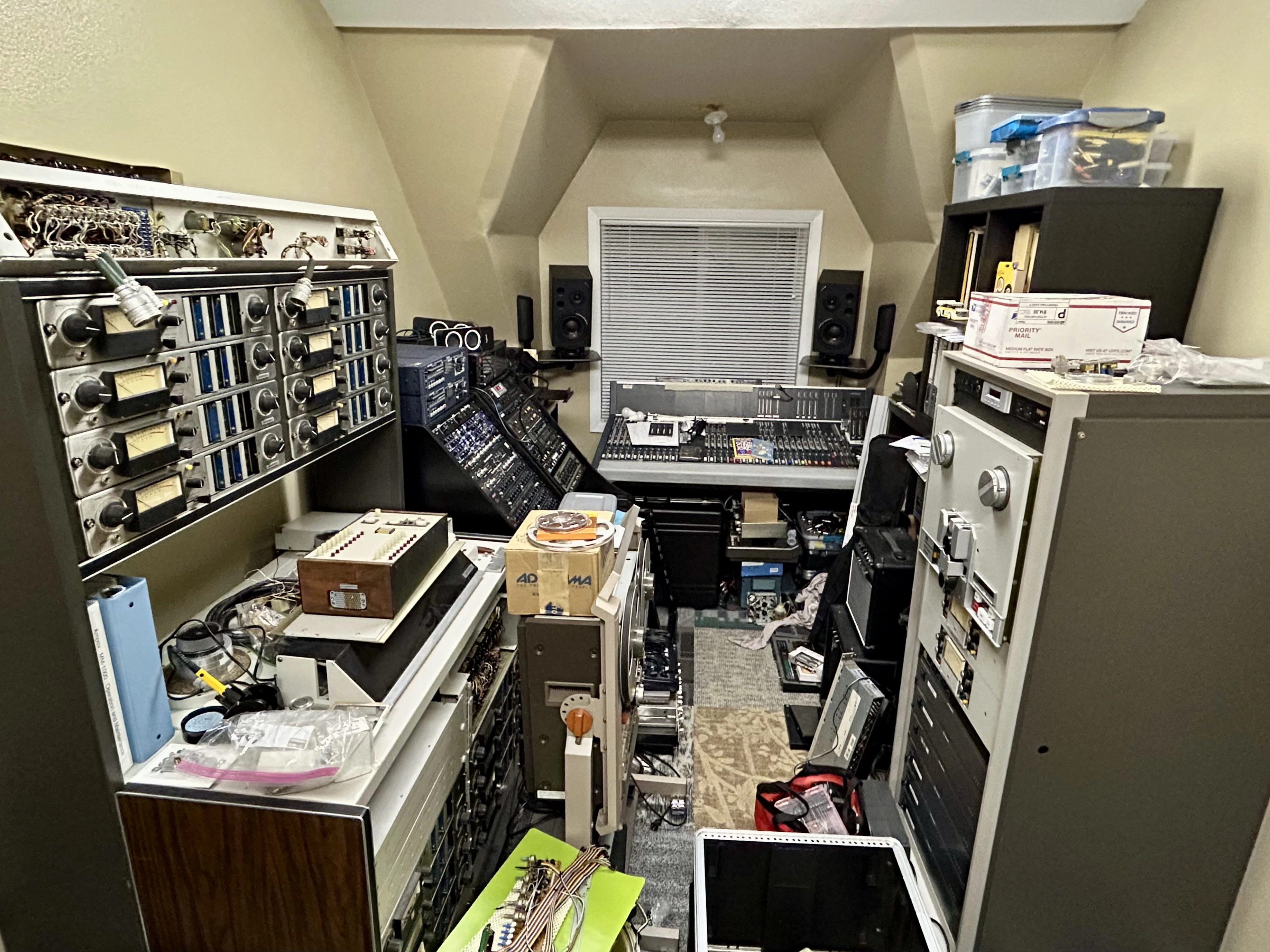 Got it from a good friend in trade. I have a lot of DATs of gigs from earlier years as well as other events…my brother used to have a Sony TCD-7 and I’d either capture the room with a pair mics direct to tape or off the console. But that’s one of the things that needs to move…in the foreground to the right is what is now dubbed the “machine rack”…the one with the 3M halftrack currently mounted at the top of the rack. What you see below that is six power supplies for the Studer desk, three spare and three active. The spare supplies need to come out and move to accessible storage, and the active supplies need to move into a new rack to be placed under the desk along with dedicated power distribution/staging and the crossover. That rack is currently being cleaned up and can be seen on the floor center foreground. Then what goes into place in the machine rack once the Studer supplies come out is a troop of Tascam machines, the DA-30, CD-RW2000, 122-B, 238, and maybe one of my Roland VSR-880 HDRs…but I’m not sure about that last one…will probably mount that closer to the desk. And then the space opened up by moving the machines can get occupied by the patchbays…after I modify the ground scheme of those…then I can start punching down cable. At least there is a plan, right?? lol. The general plan has been patiently, or sometimes not so patiently plopped in my brain but, again, this is the first time since 2013ish I’ve had a space where everything fits AND I can manipulate racks and equipment as needed to manage connections, etc. And the last decade has just been…a mix of very wonderful and arduous life events and changes, and always very full. Moving four times didn’t help with a setup this large…plus, yes, lots of projects and various repairs and explorations both for myself and others, many which remain ongoing…I had a room that was large enough at one place, but the big Ampex 2” machine physically couldn’t fit down the hall. And I was still so in flux with what I wanted to do as far as a mixing center, and in the midst of that found and acquired the Studer desk, but then we moved. You see in the pic the Studer and Ampex are finally joined in one relatively functional space, albeit on the second floor. Yes. That was exciting…getting the Ampex and Studer up the stairs. Anyway, I can finally start settling the whole system instead of working with only facets of it, and pick up on the Ampex restoration where I left of a decade or so ago. We plan on staying here for awhile.