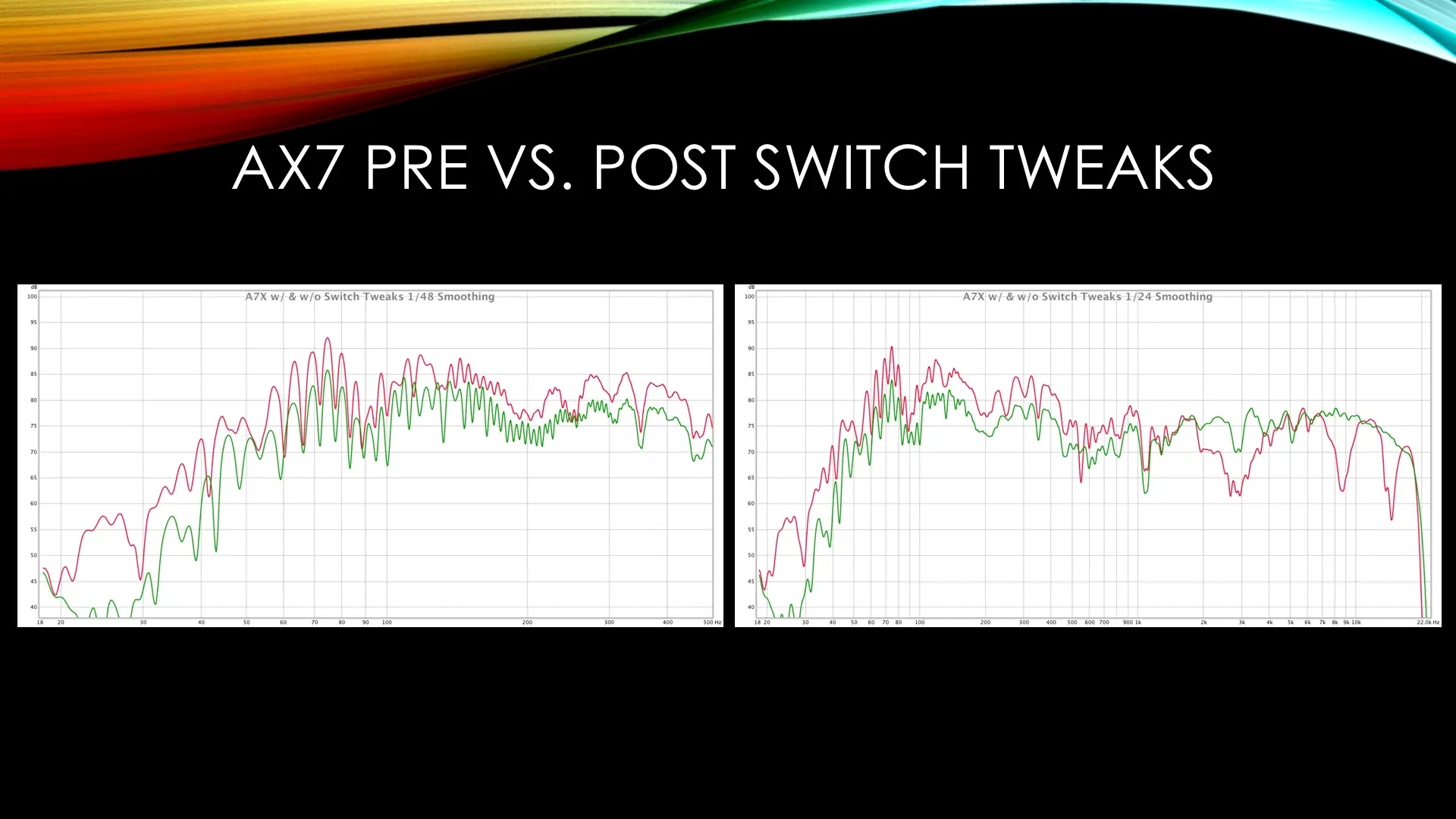 Here is a link to full res slides, selected full res pics and the REW measurements. OK, I guess I can't post a link yet. I'll post a couple of full res.
