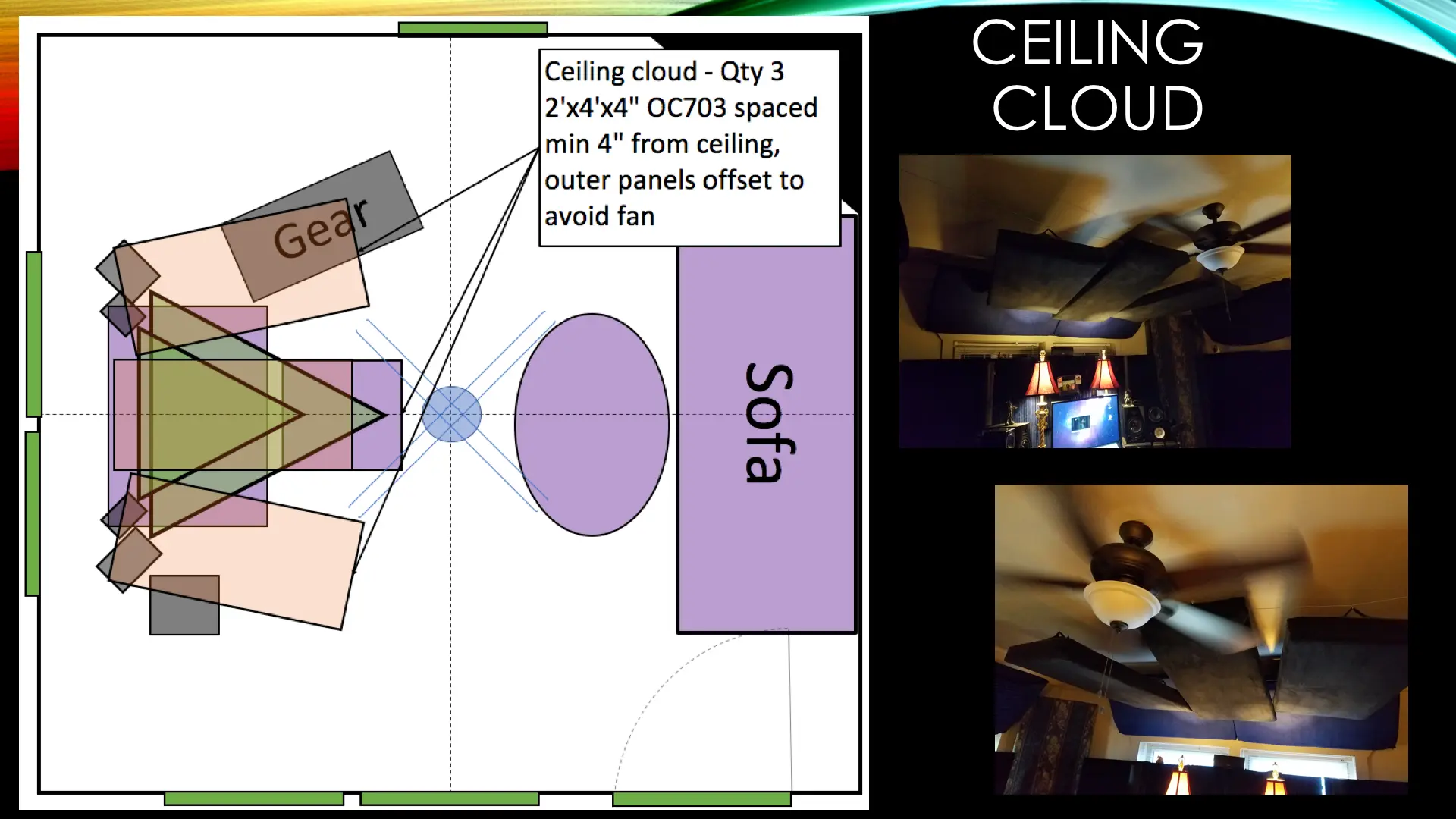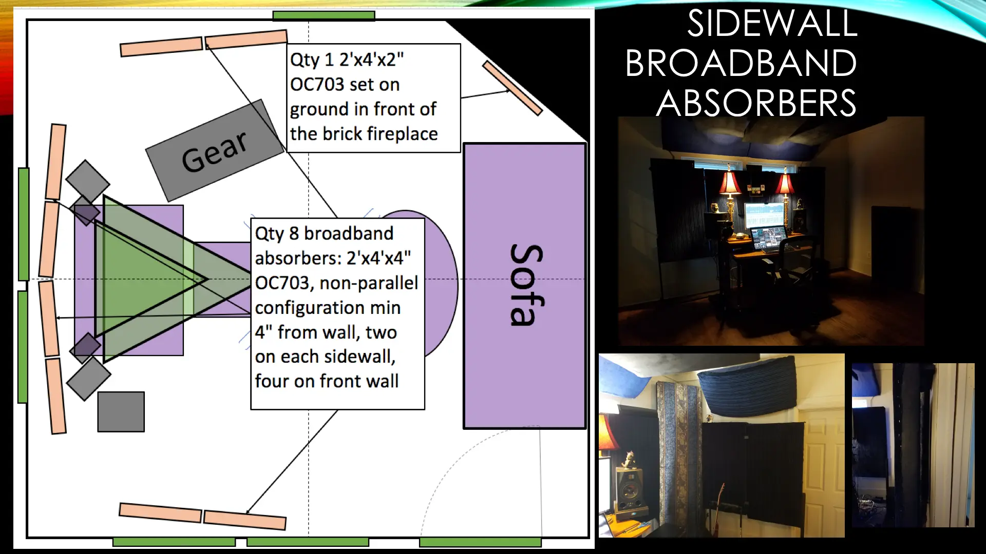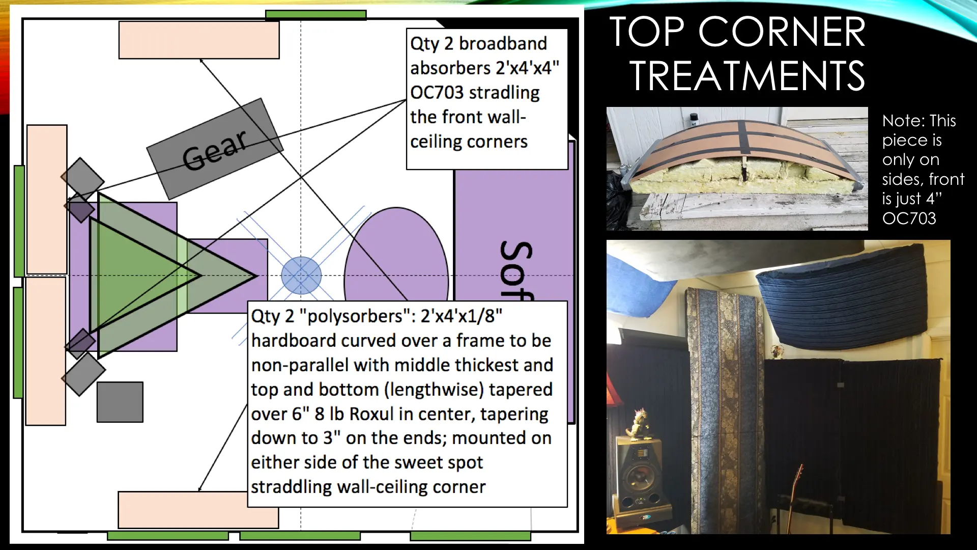 I rented a small duplex and have a 13'10"x13'10"x8'9" room with a hard floor (all of the details are in the subsequent slides). Clearly there are limitations with this small, somewhat cubic room. Also, as a renter, I can't make any structural changes. I spent a long time researching and planning the Acoustic Treatment, and ran the plans by some folks who said they looked good. I spent about $2,500, and a huge number of hours, designing, constructing and installing the treatment. When I took the REW measurements, I was quite bummed at the results. I’m seeking feedback on the design and results and any recommendations for improvements. Thanks in advance to anyone that can help me out.