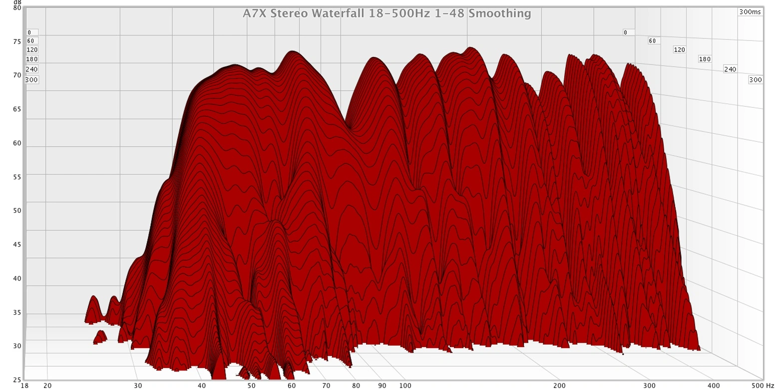 Does the room sound dull or bright, obviously heavy at the bottom or missing the bottom totally - does it sound just dull, or have peculiar nodes where the sound changes with just a bit of ear movement. I always listen to every space I work in, and my ears tell me what it's likely to need to tame it. If you see a small room with parallel walls and surfaces that are hard you know it's going to sound boxy - I looked at all those wonderful plots and just thought that I had no idea what it sounds like. I cannot (what is the audio version of visualise?) imagine what it sounds from those. Confused? Yep, unbalanced, unfocussed, weird stereo image as the response clearly changes with frequency - but I have no idea if I could live with it.